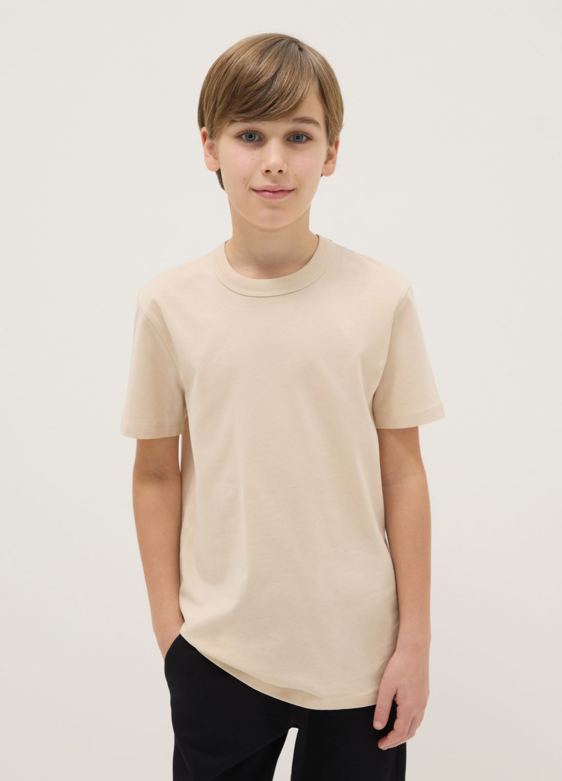 Тип продукта: Бежевая футболка с круглым вырезом для мальчиков из чистого хлопка, свободная посадка