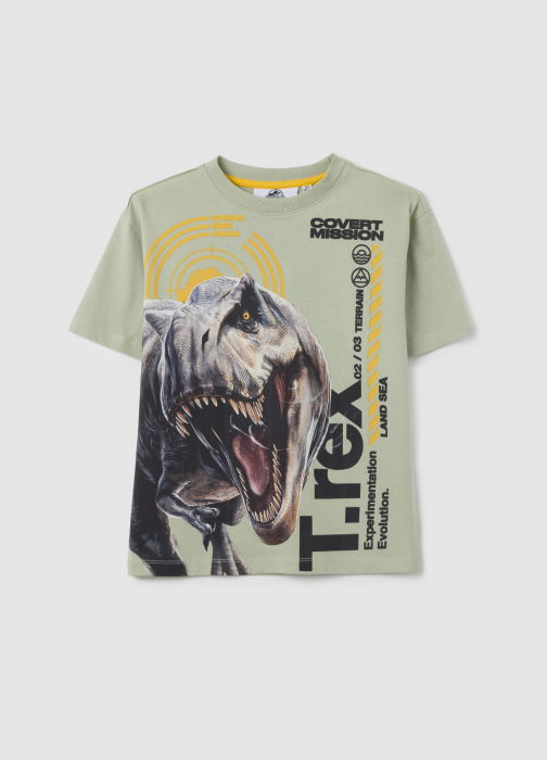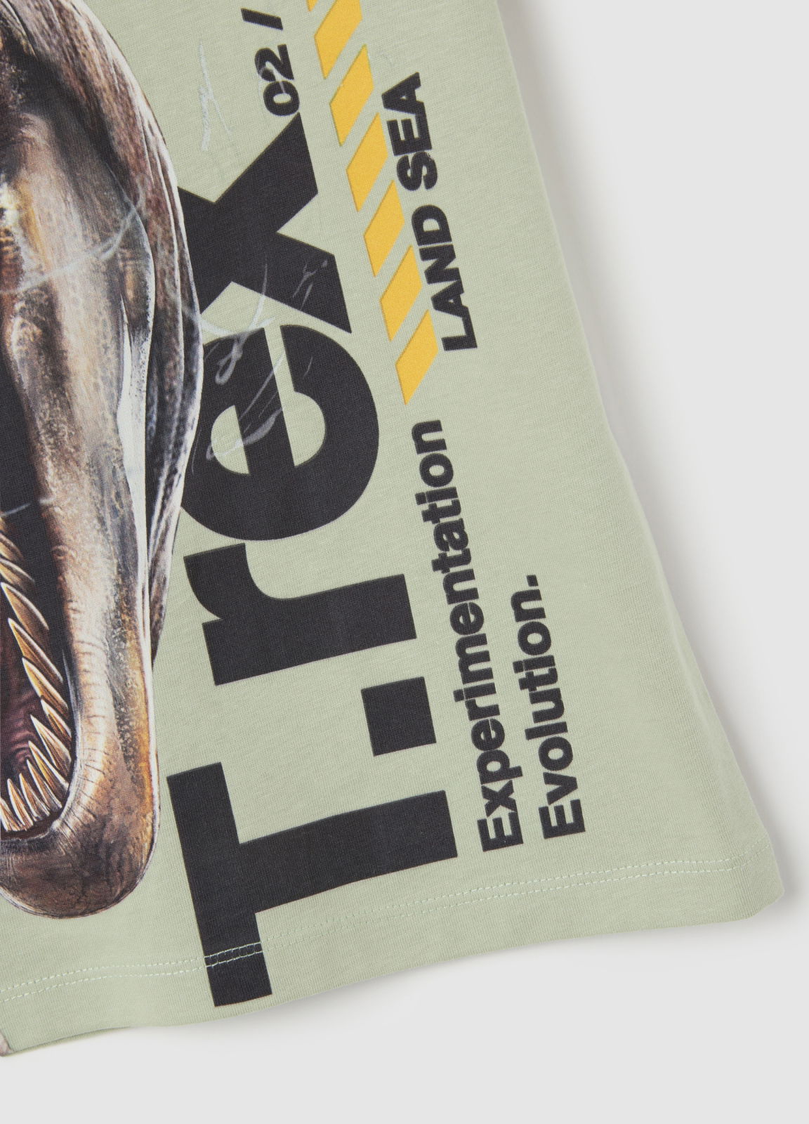 Тип продукта: Детская зеленая хлопковая футболка с динозавром, прямого кроя