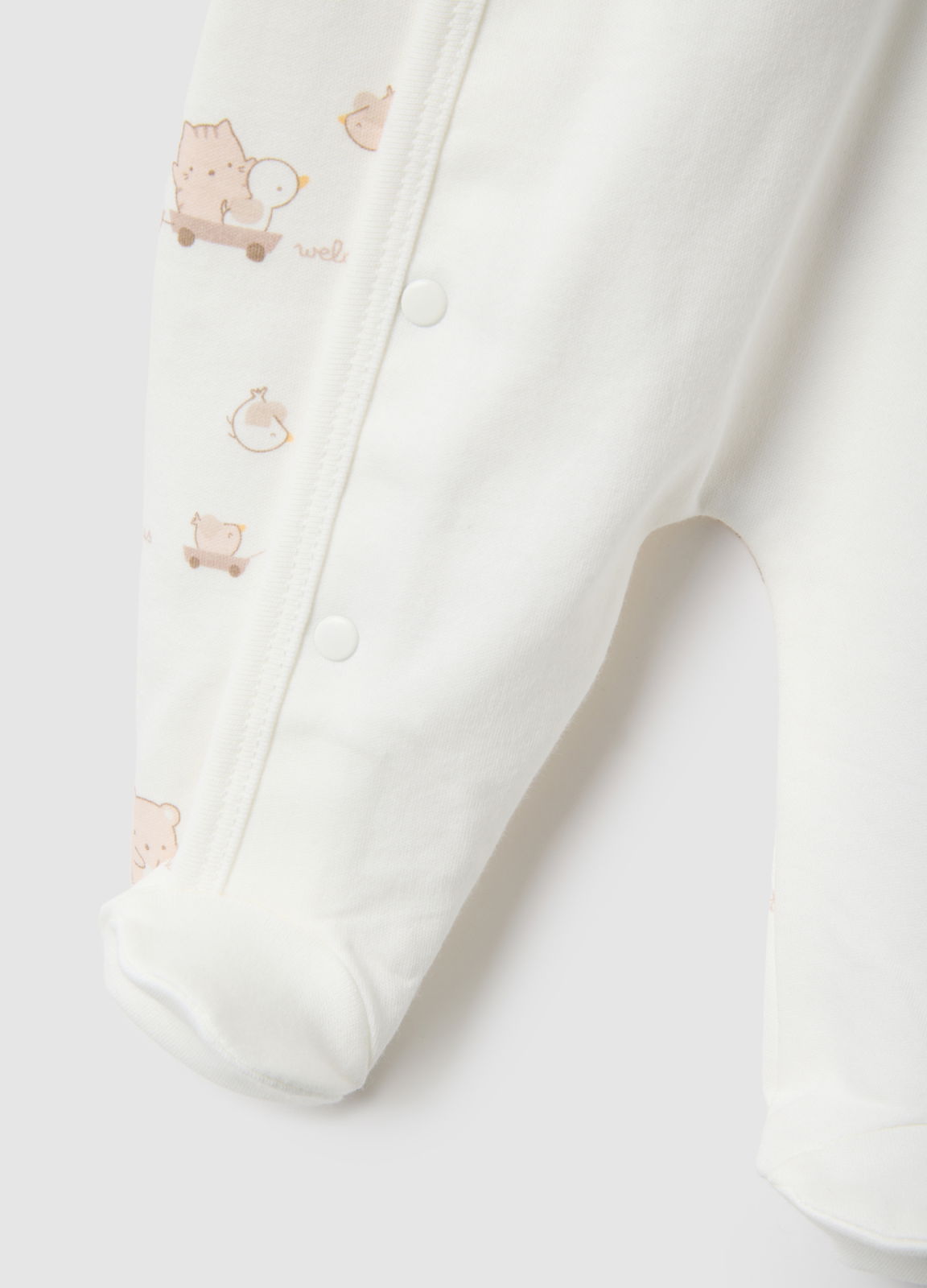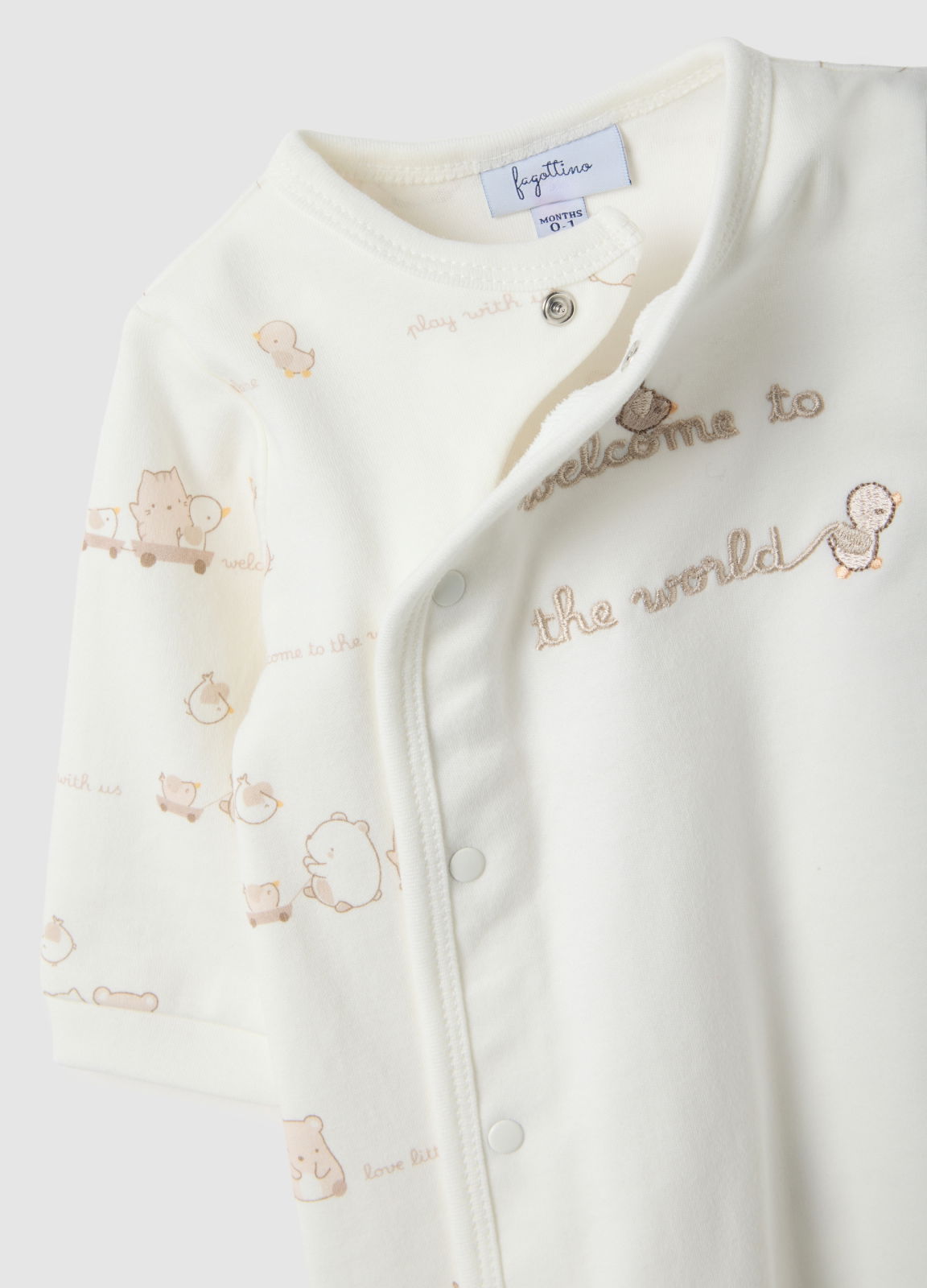 Характеристики: Белый ромпер для новорождённых из линии Fagottino изготовлен из чистого хлопка, обеспечивая мягкость и комфорт нежной коже. Длинные рукава и круглый вырез гарантируют удобство в течение всего дня. Застёжка на кнопках облегчает переодевание, что идеально для частой смены одежды малыша. Украшен милой вышивкой с животными.
