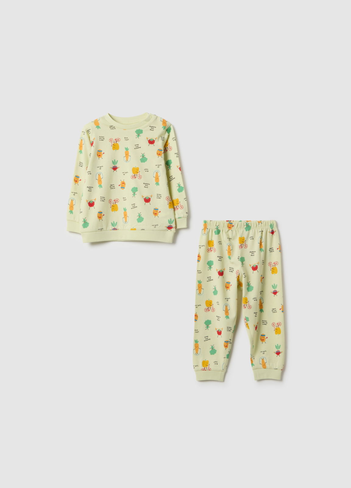 Характеристики: Жёлтая пижама из линии Fagottino изготовлена из чистого хлопка для новорождённых от 0 до 36 месяцев. В комплект входят кофта с длинным рукавом и брюки с ярким принтом фруктов и овощей. Идеальна для весны и лета.
