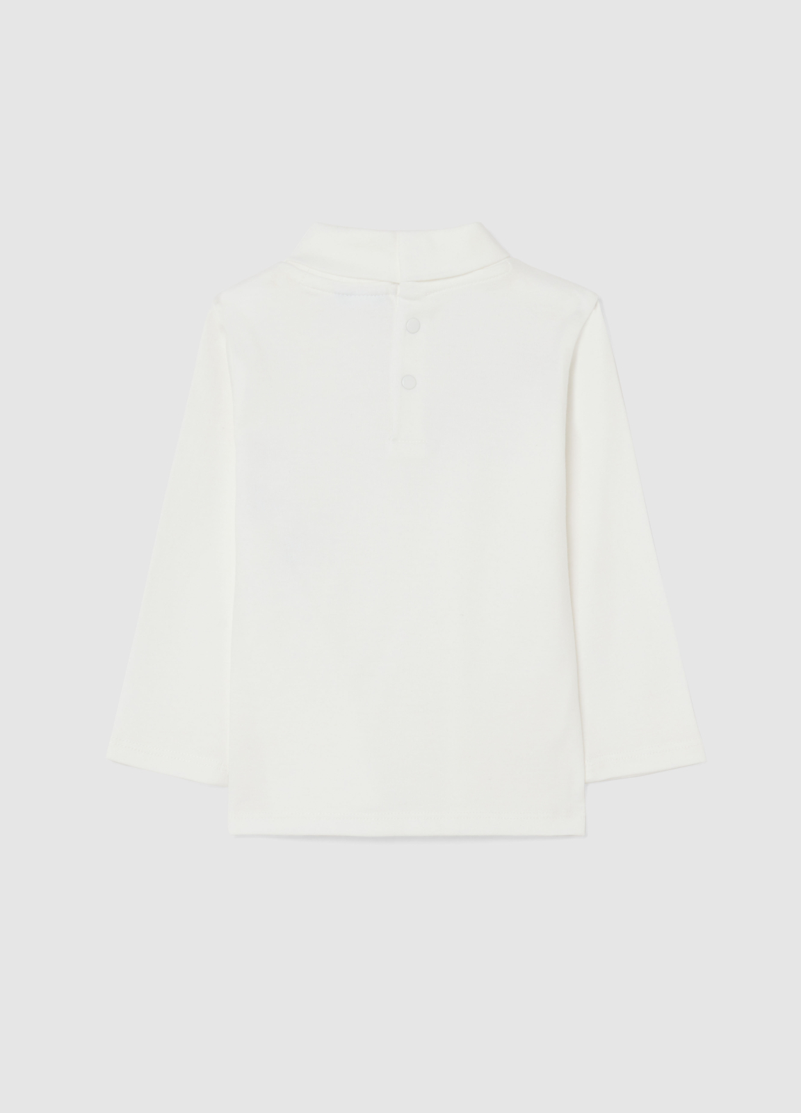 Тип продукта: Белый детский лонгслив с воротником стойкой из чистого хлопка, свободного кроя, с принтом