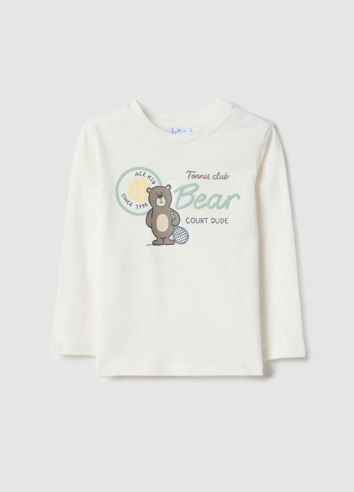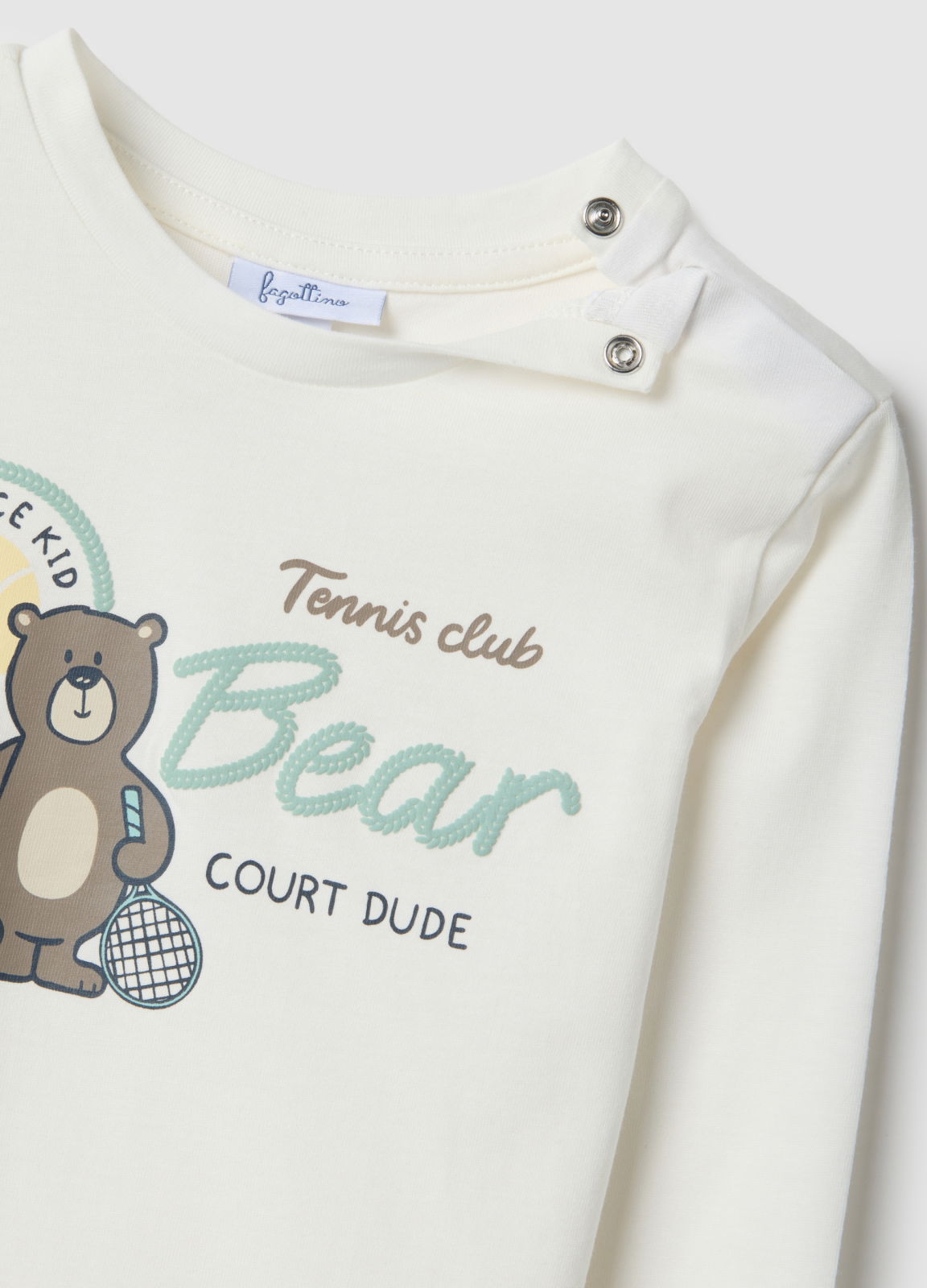 Характеристики: Белая футболка с длинным рукавом из линии Fagottino изготовлена из чистого хлопка для детей в возрасте от 9 до 36 месяцев. Дизайн украшен милым принтом с мишкой и теннисной тематикой спереди, что особенно понравится любителям игр. Прямой крой идеально подходит для переходных сезонов.