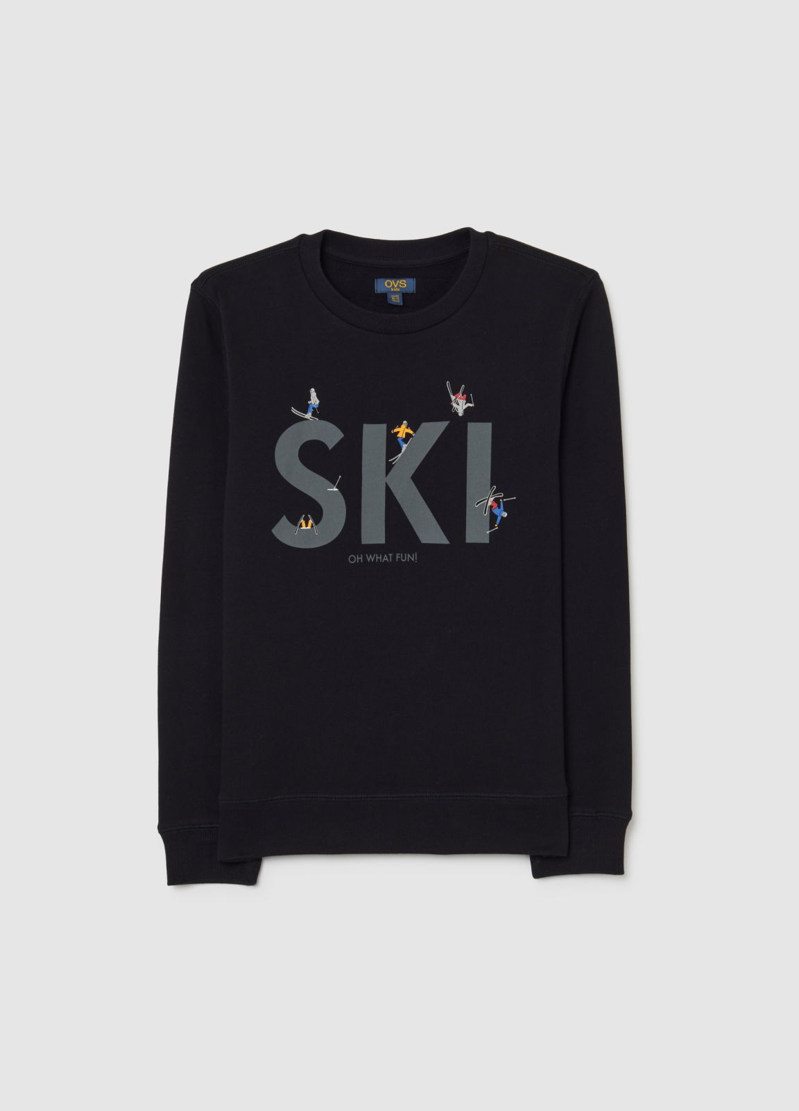 Тип продукта: Чёрный свитшот для мальчиков из чистого хлопка, regular fit, с принтом SKI