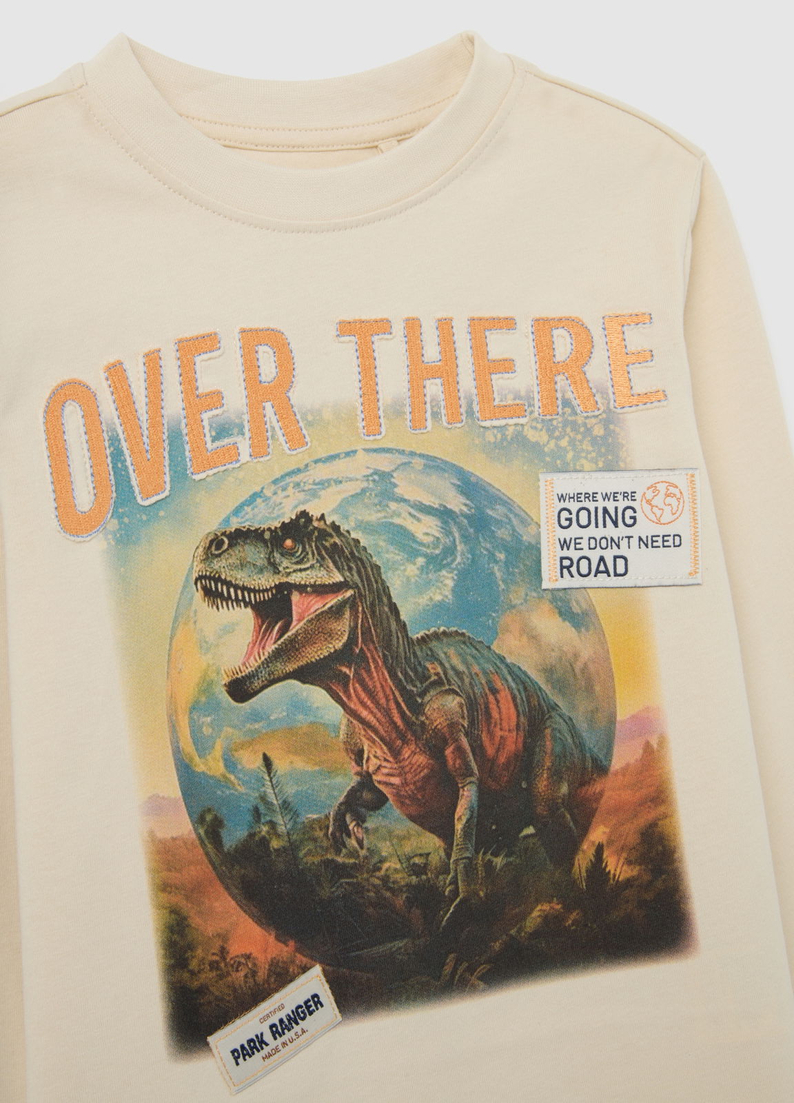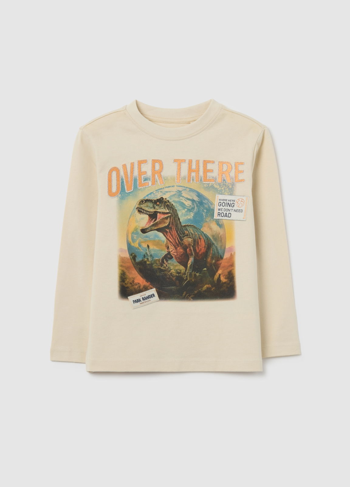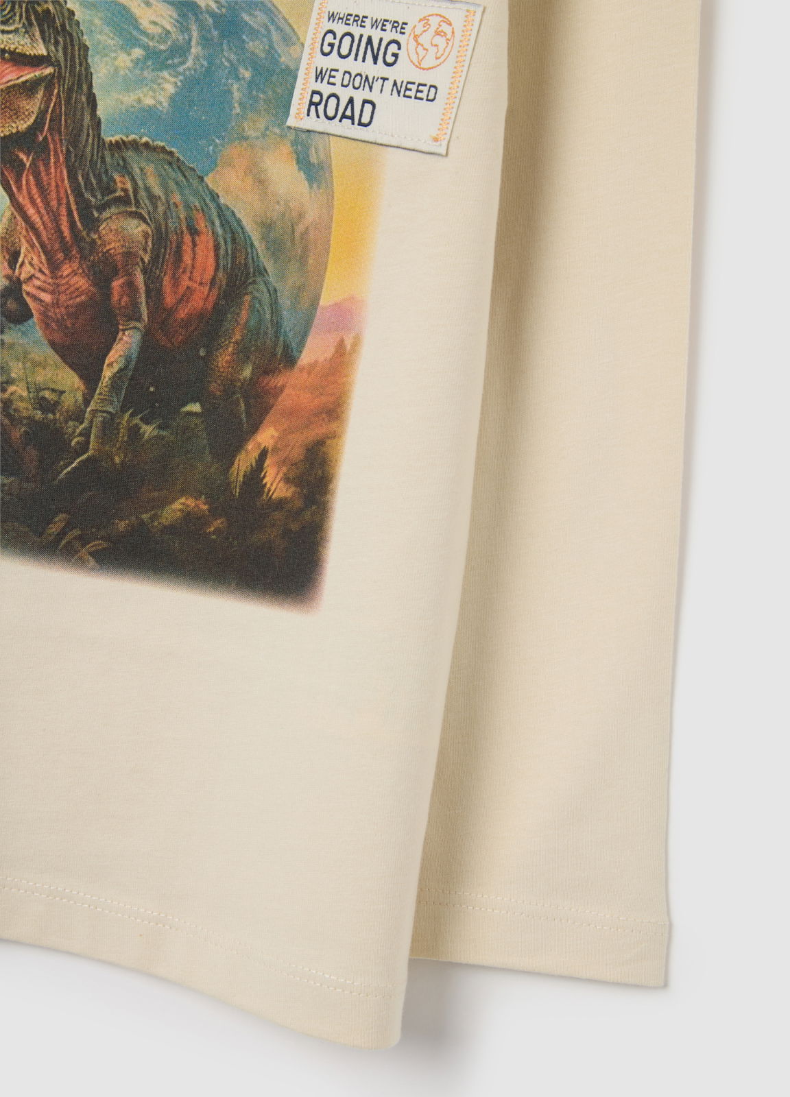 Характеристики: Бежевая хлопковая футболка с длинным рукавом от OVS Kids для мальчиков. Идеальна для маленьких исследователей, украшена принтом динозавра. Подходит для осенне-зимнего сезона, обеспечивает тепло и комфорт. Размеры: 3–10 лет.