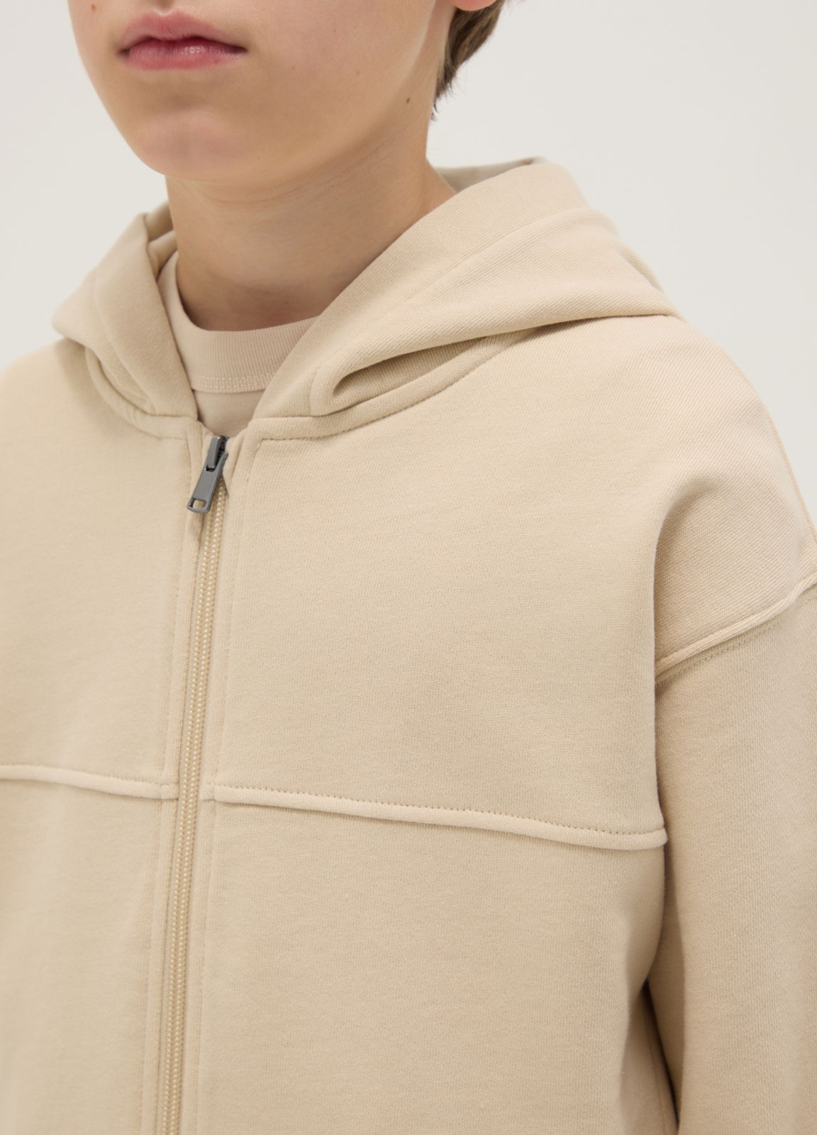 Тип продукта: Бежевая толстовка для мальчиков из чистого хлопка, оверсайз, с капюшоном и молнией