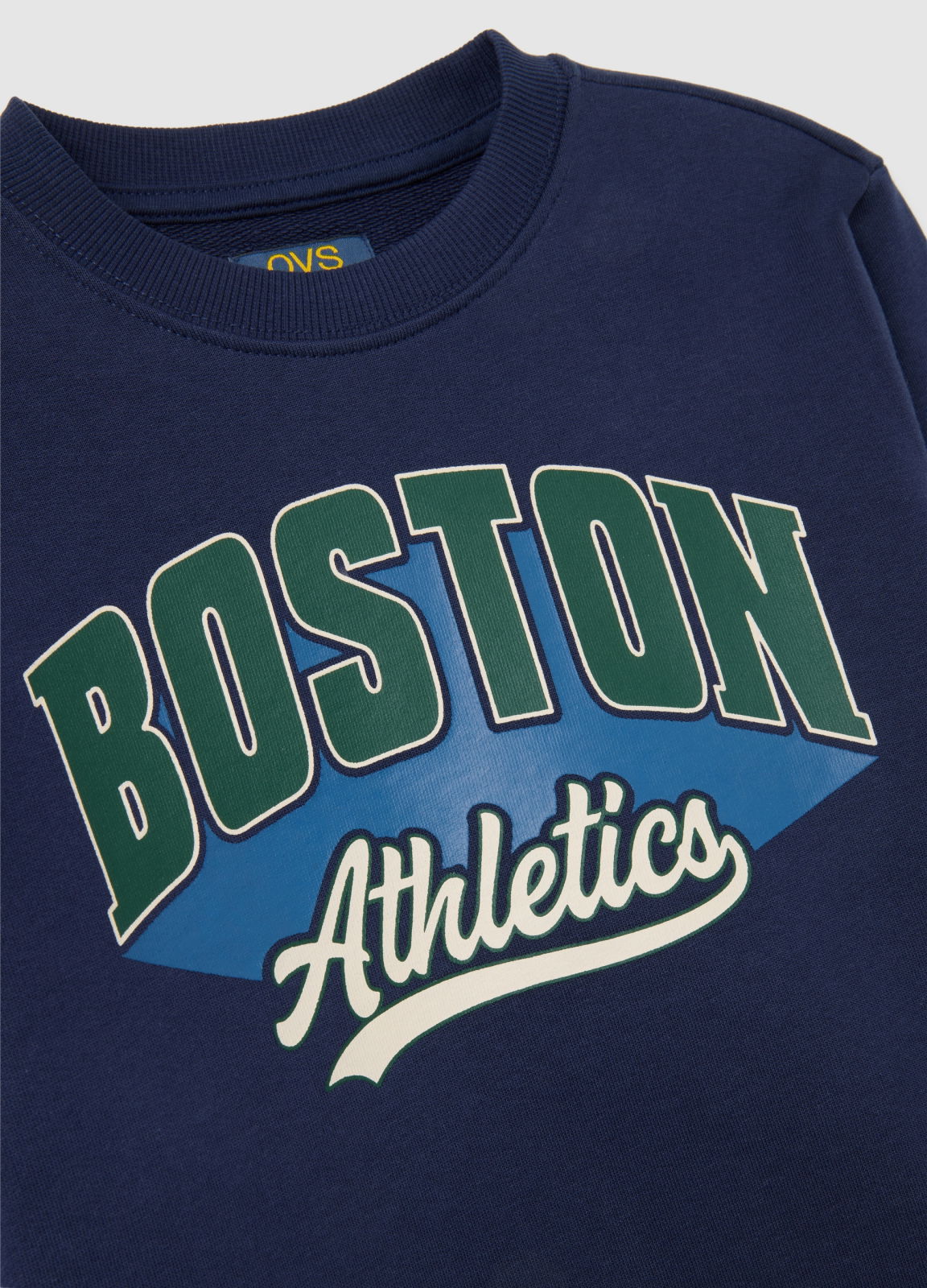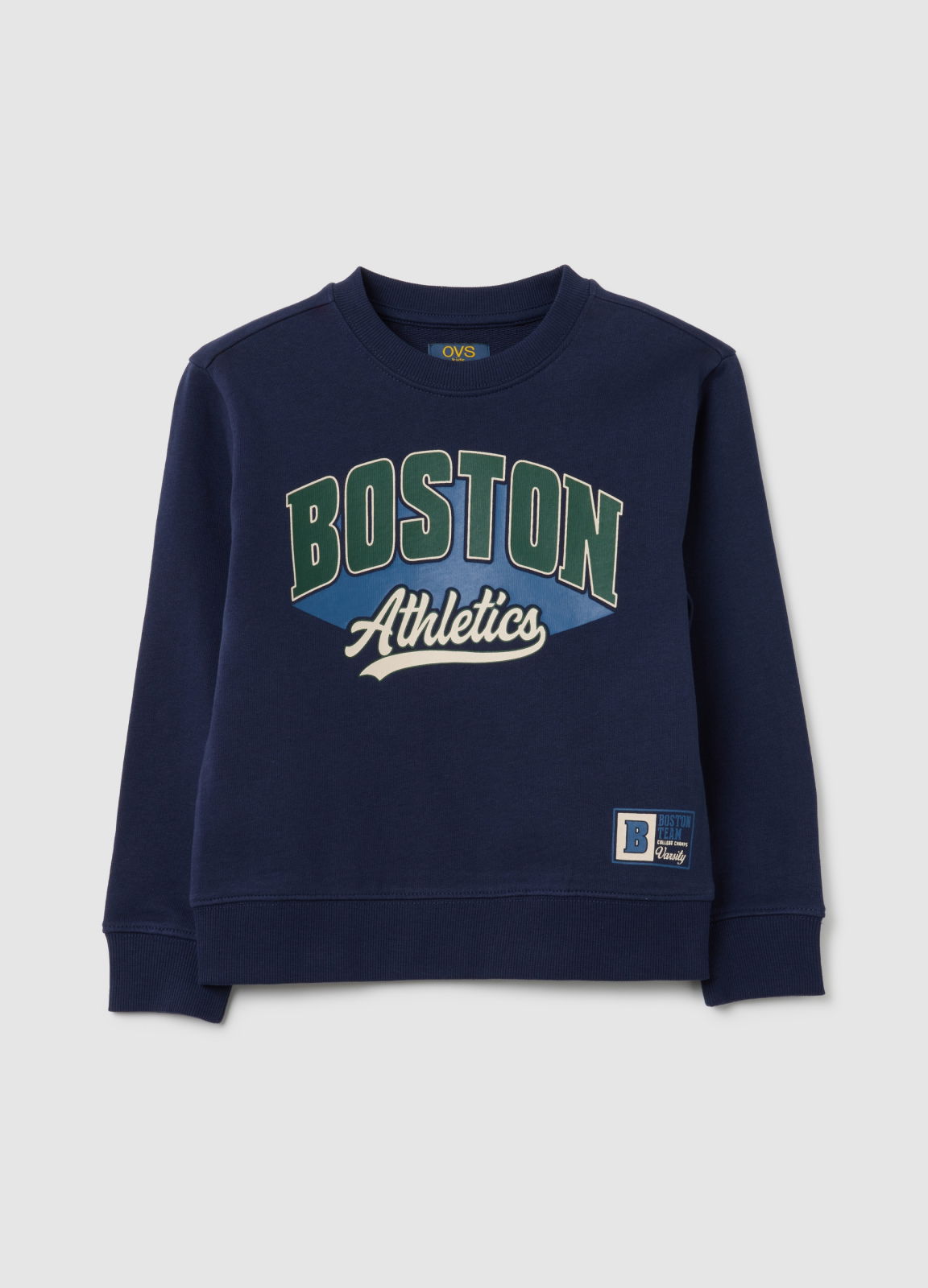 Характеристики: Синий детский свитшот из линии OVS Kids изготовлен из чистого хлопка, идеально подходит для детей от трех до десяти лет.Изделие украшено принтом Boston Athletics, который добавляет спортивный акцент в повседневные осенне-зимние образы.С круглым вырезом и длинными рукавами, оснащено эластичными манжетами и ребристым низом для комфортной посадки, идеально подходит для прохладных дней.