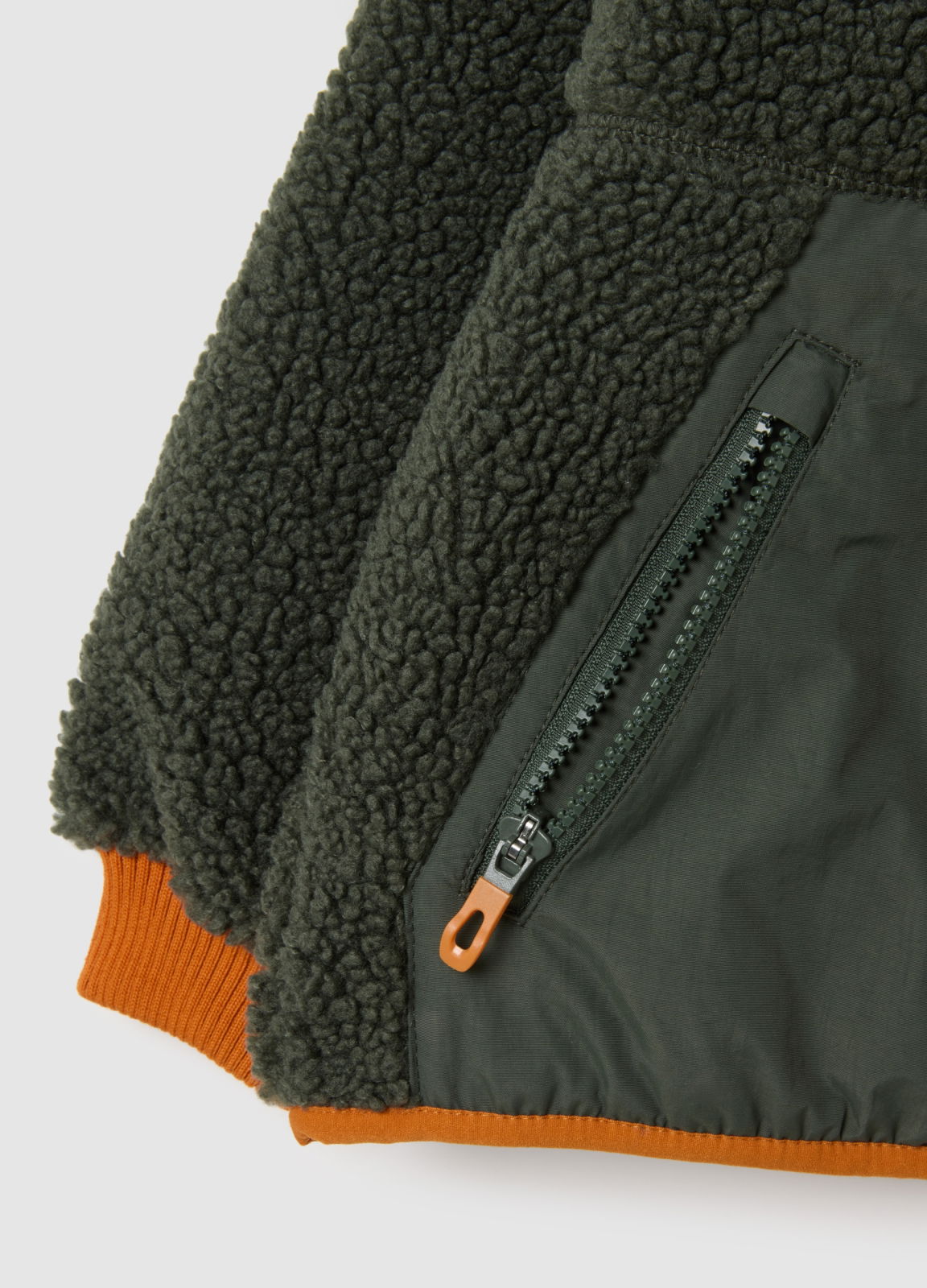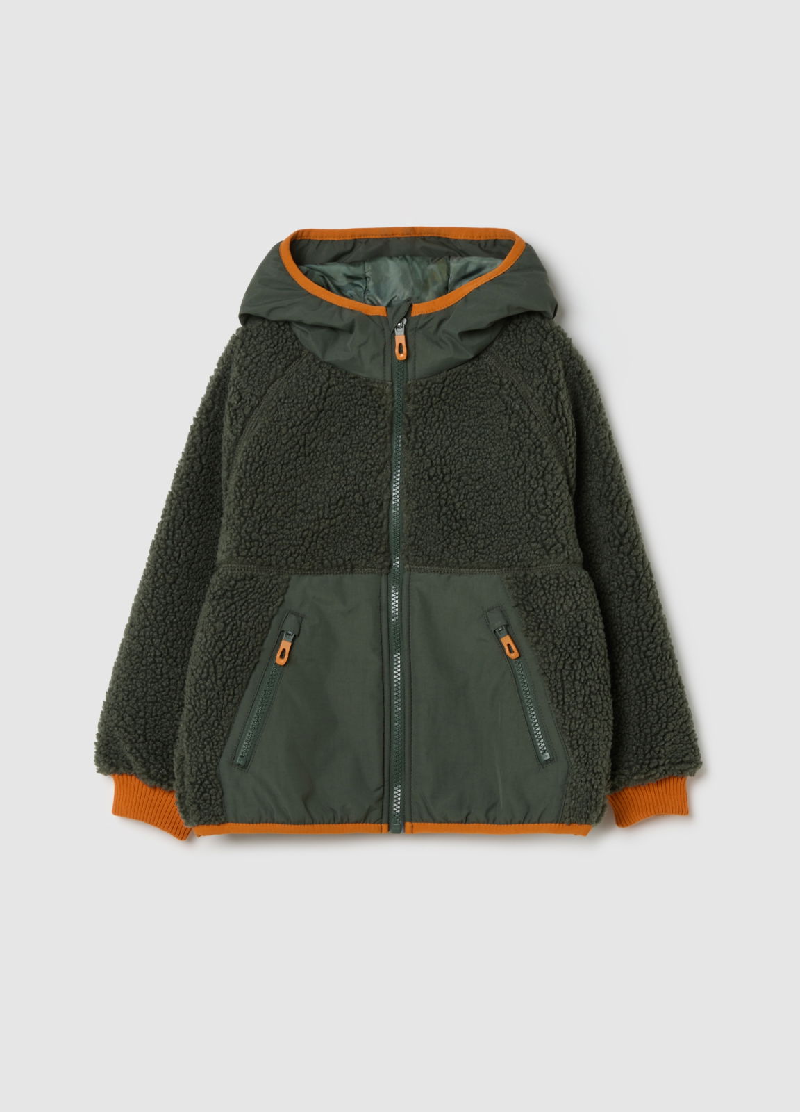 Характеристики: Зелёное худи от OVS Kids для мальчиков 3-10 лет, шерпа смесь, с капюшоном и двумя карманами на молнии, тёплое и удобное для зимы, застёжка спереди.