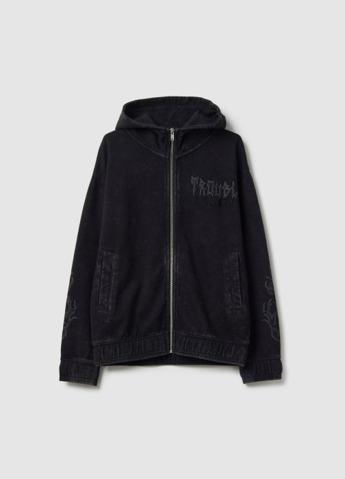 Тип продукта: Черное хлопковое худи для мальчиков, обычный крой, с молнией