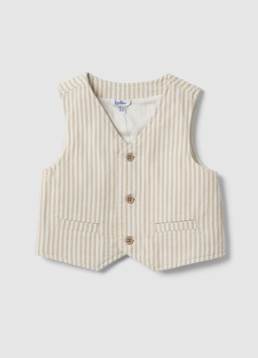 Характеристики: Этот многоцветный полосатый жилет из линии Fagottino изготовлен из 100% хлопка и идеально подходит для детей в возрасте от 9 до 36 месяцев. Полосатый дизайн придает изделию динамичность, а застежка на пуговицы делает его удобным в использовании. Жилет полностью на подкладке, что обеспечивает комфорт и мягкость в межсезонье.
