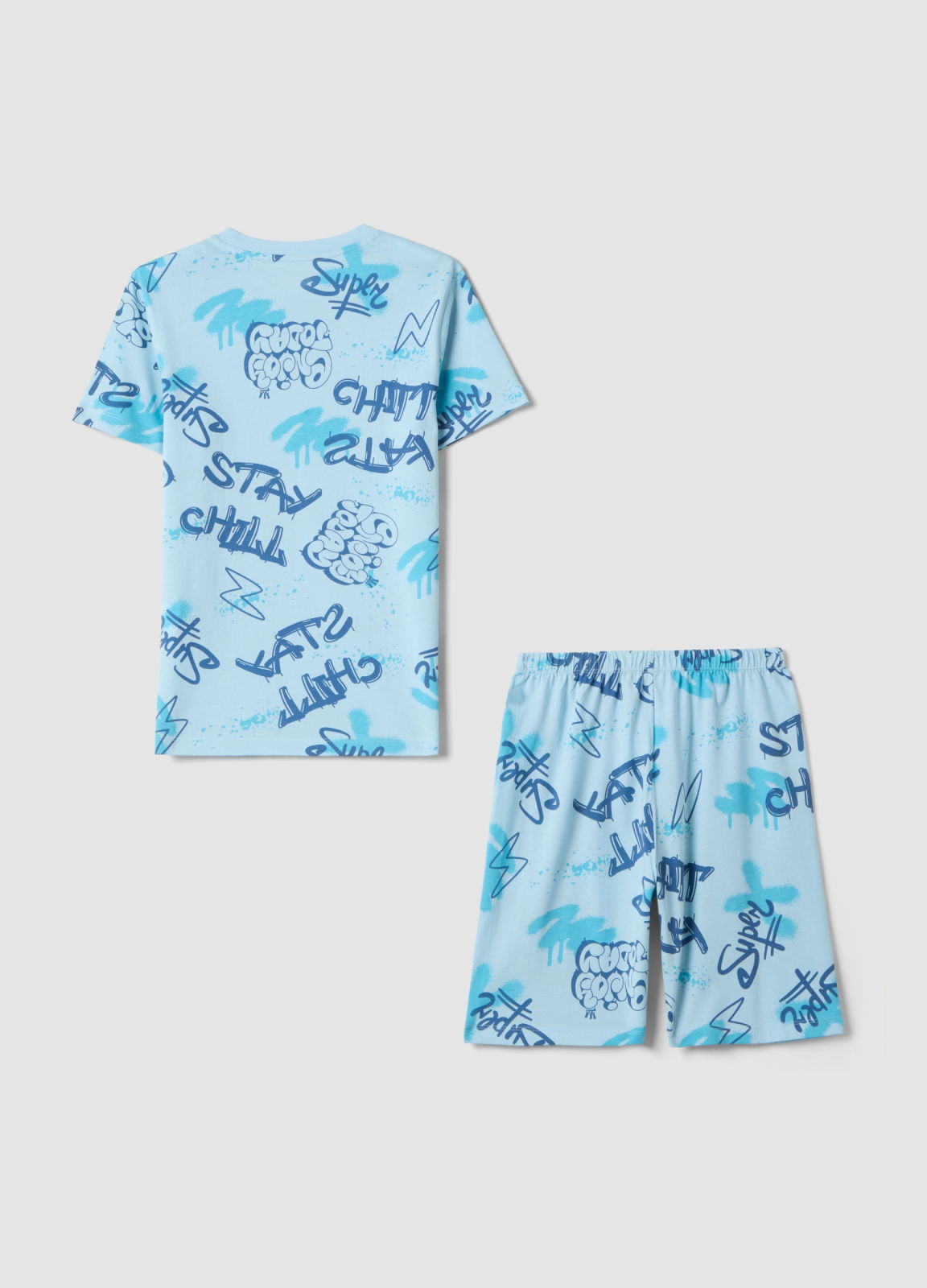 Характеристики: Пижама азурная OVS KIDS для мальчиков 9-14 лет, футболка с коротким рукавом и шорты, органический хлопок, яркая графика, regular fit, свобода движения.