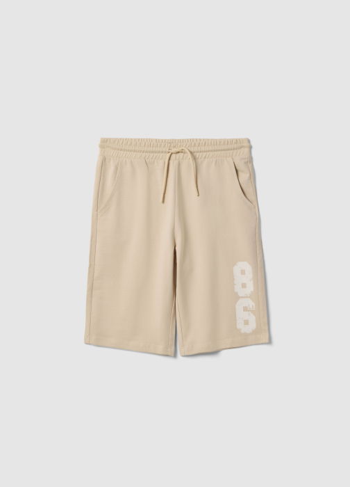 Тип продукта: Бежевые шорты из чистого хлопка для мальчиков, крой regular fit с принтом