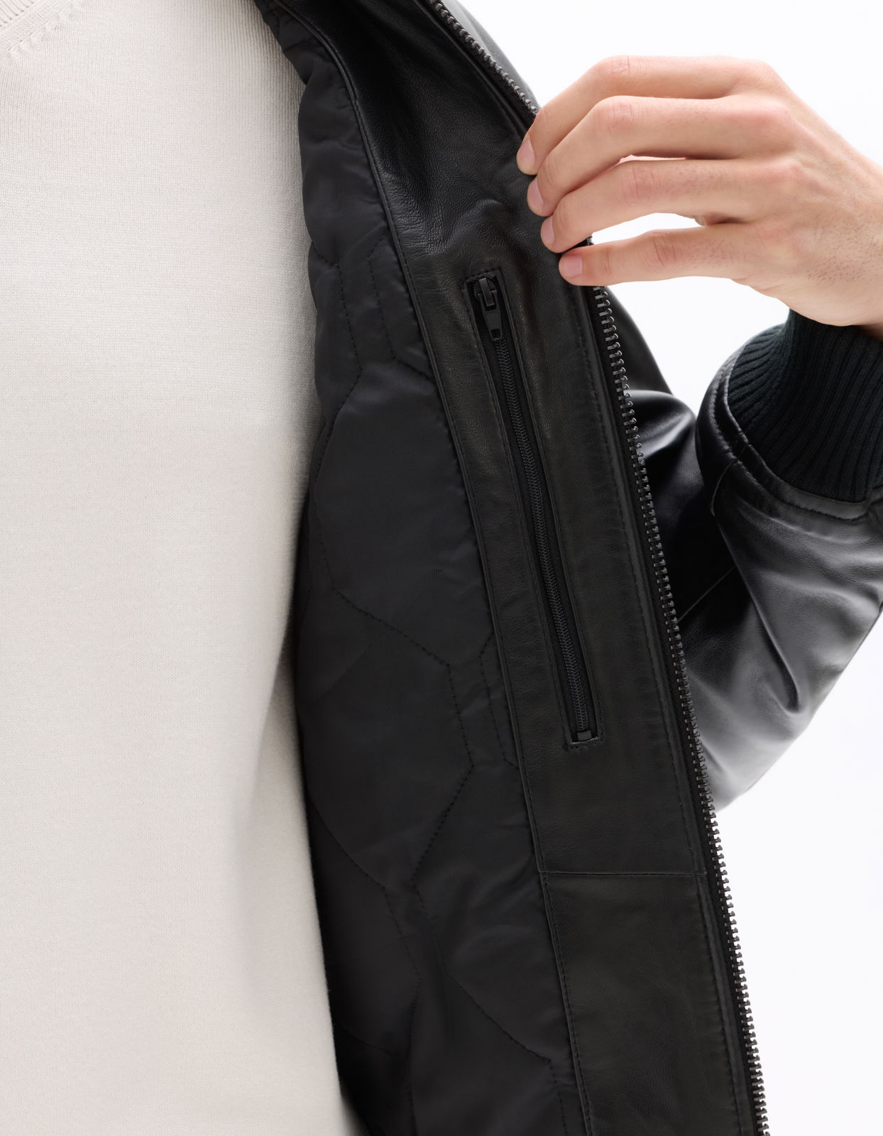 Заявите о себе с помощью этого классического черного кожаного бомбера, который идеально подходит для любого сезона. Создан для современного мужчины, который ценит элегантность и комфорт