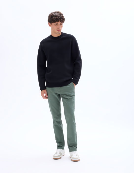 - Сочетайте с брюками-чиносами или джинсами сырого цвета.