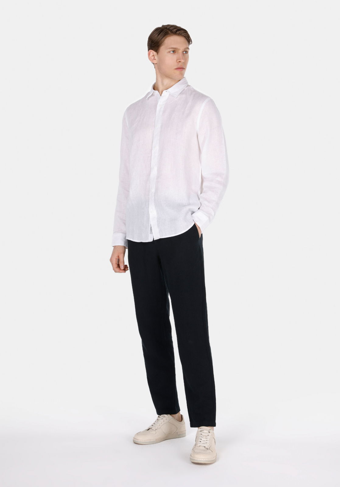 Мужские Брюки Чёрные Regular: 44% Вискоза, 29% Хлопок, 27% Лен.
