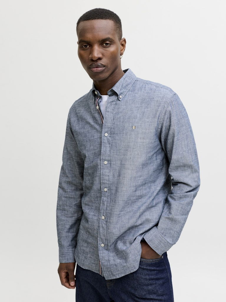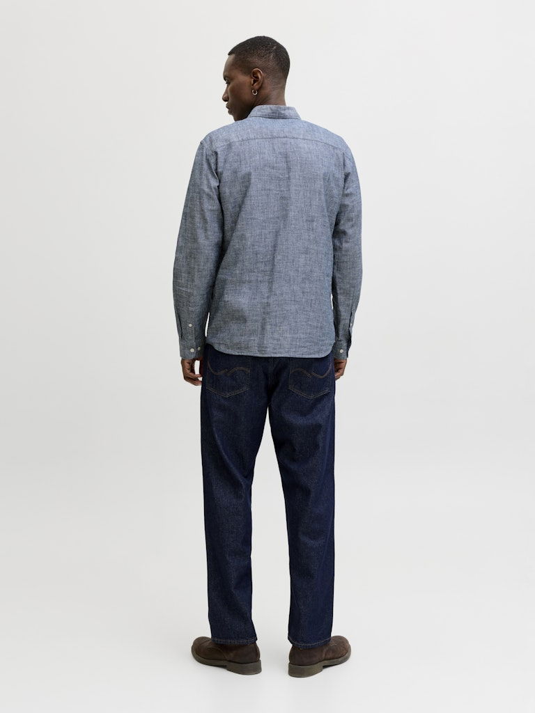Jack Jones Мужская Рубашка Синяя Regular: 30% Хлопок Органический 30% Лен 20% Хлопок Переработанный 20% Хлопок