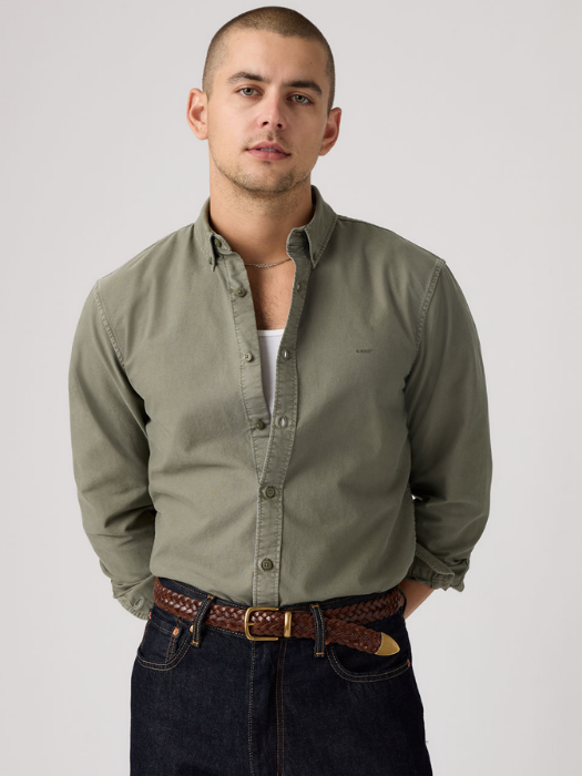 Мужская Рубашка Хаки Relaxed: 100% Хлопок