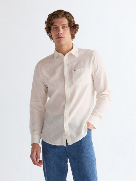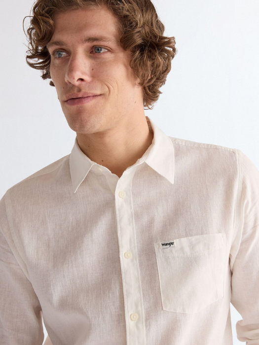 Wrangler Мужская Рубашка Кремовая Regular: 54% Лён 46% Хлопок