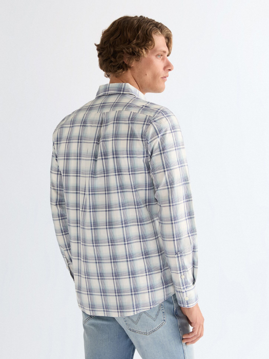 Wrangler Мужская Рубашка Белая/Синяя Regular