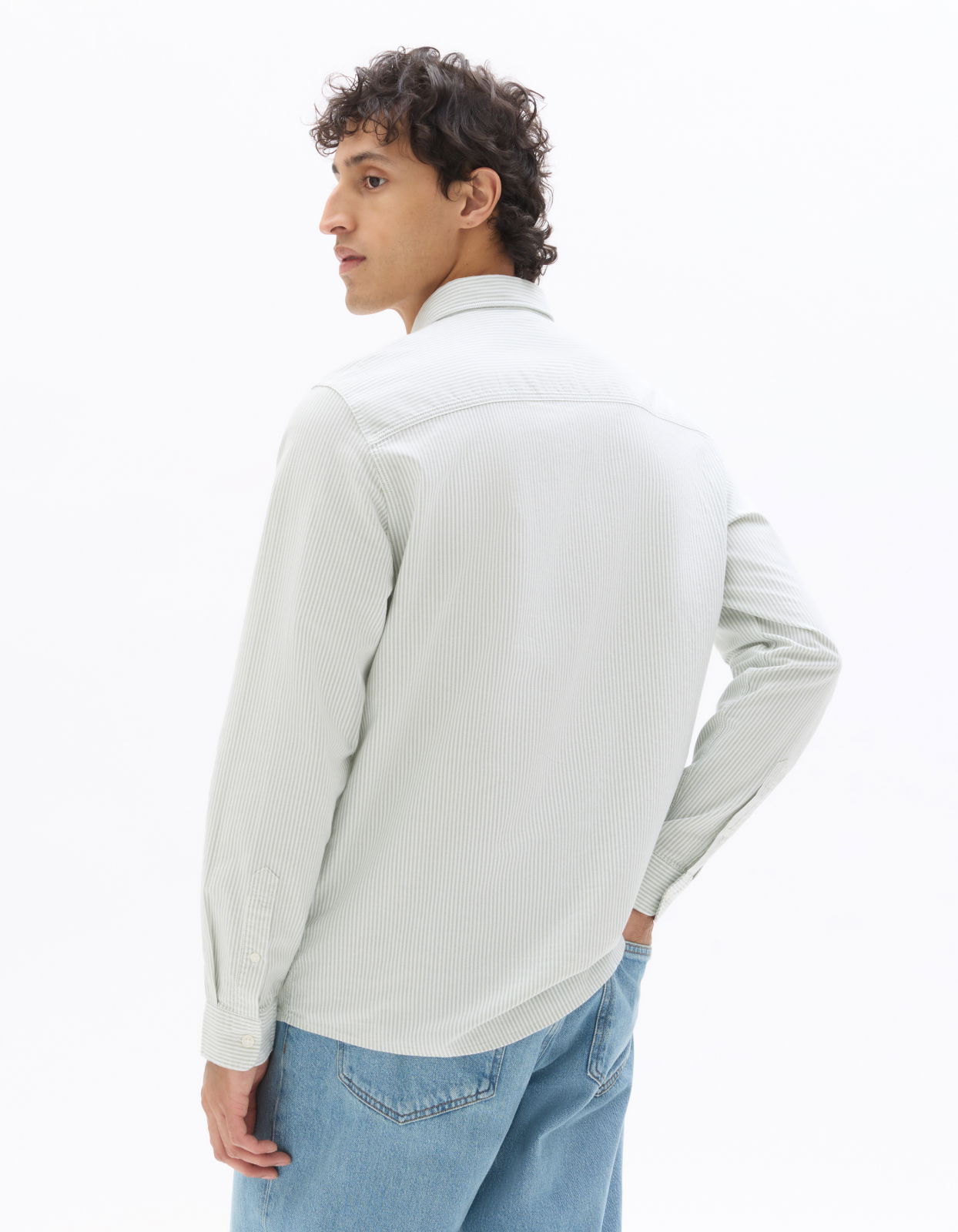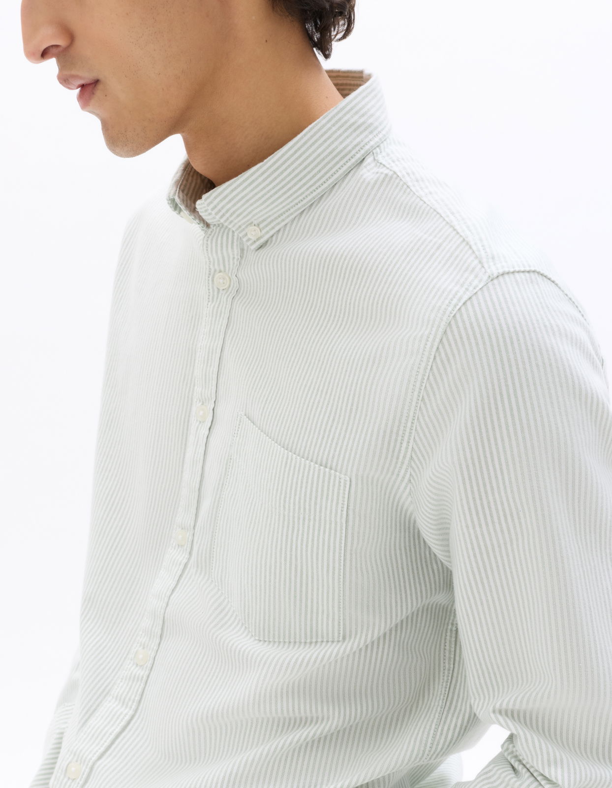 - Оксфордская рубашка в зеленую полоску