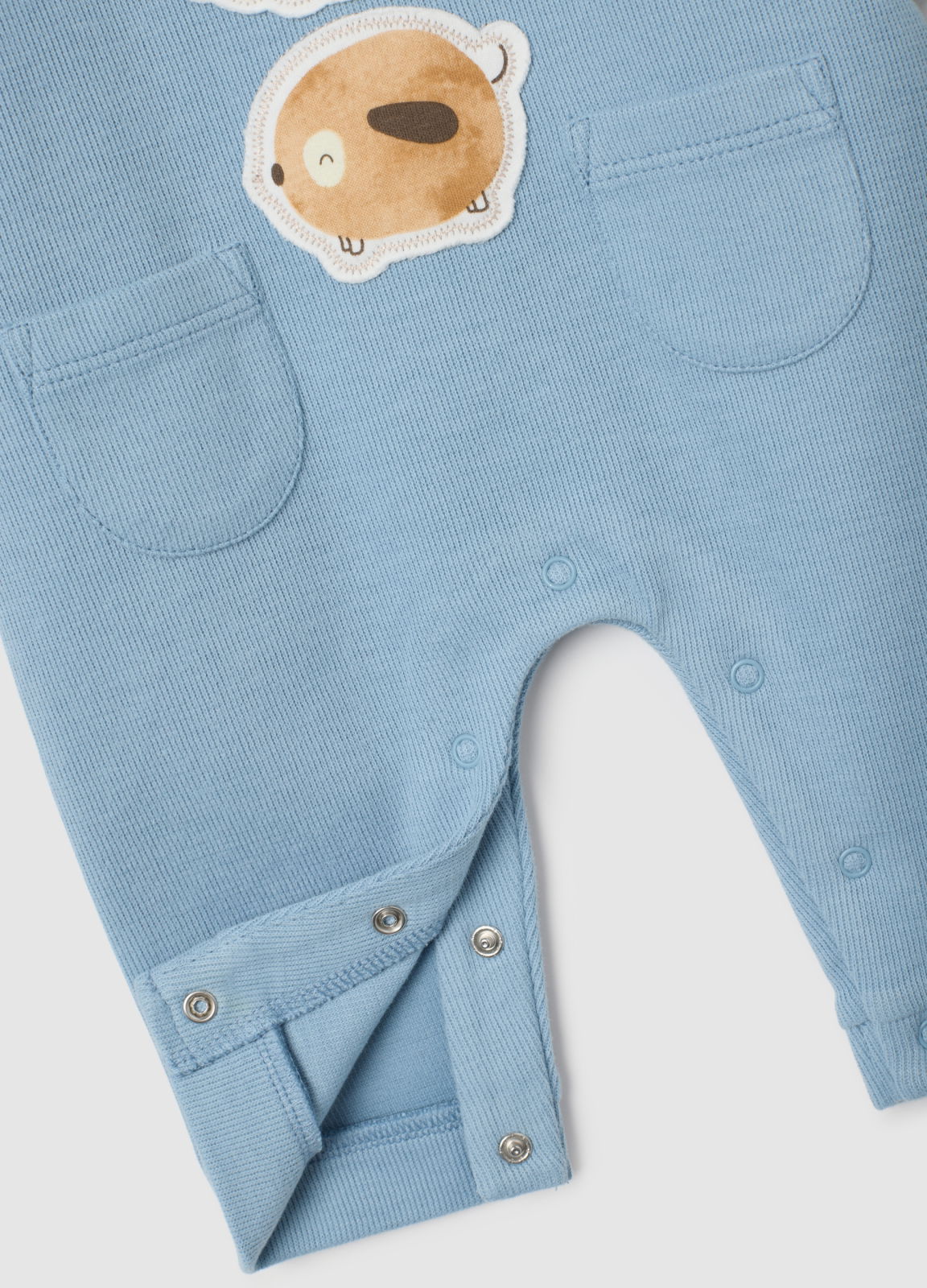 Характеристики: Синий ползунок для малышей от Fagottino из чистого хлопка, мягкий и дышащий, с длинными рукавами и кнопками, удобный для быстрой смены одежды, весёлый принт, практичные карманы.