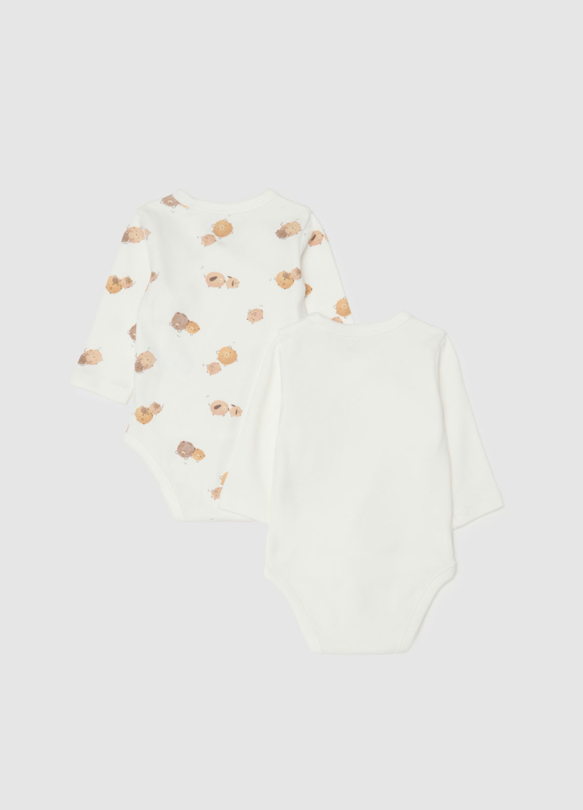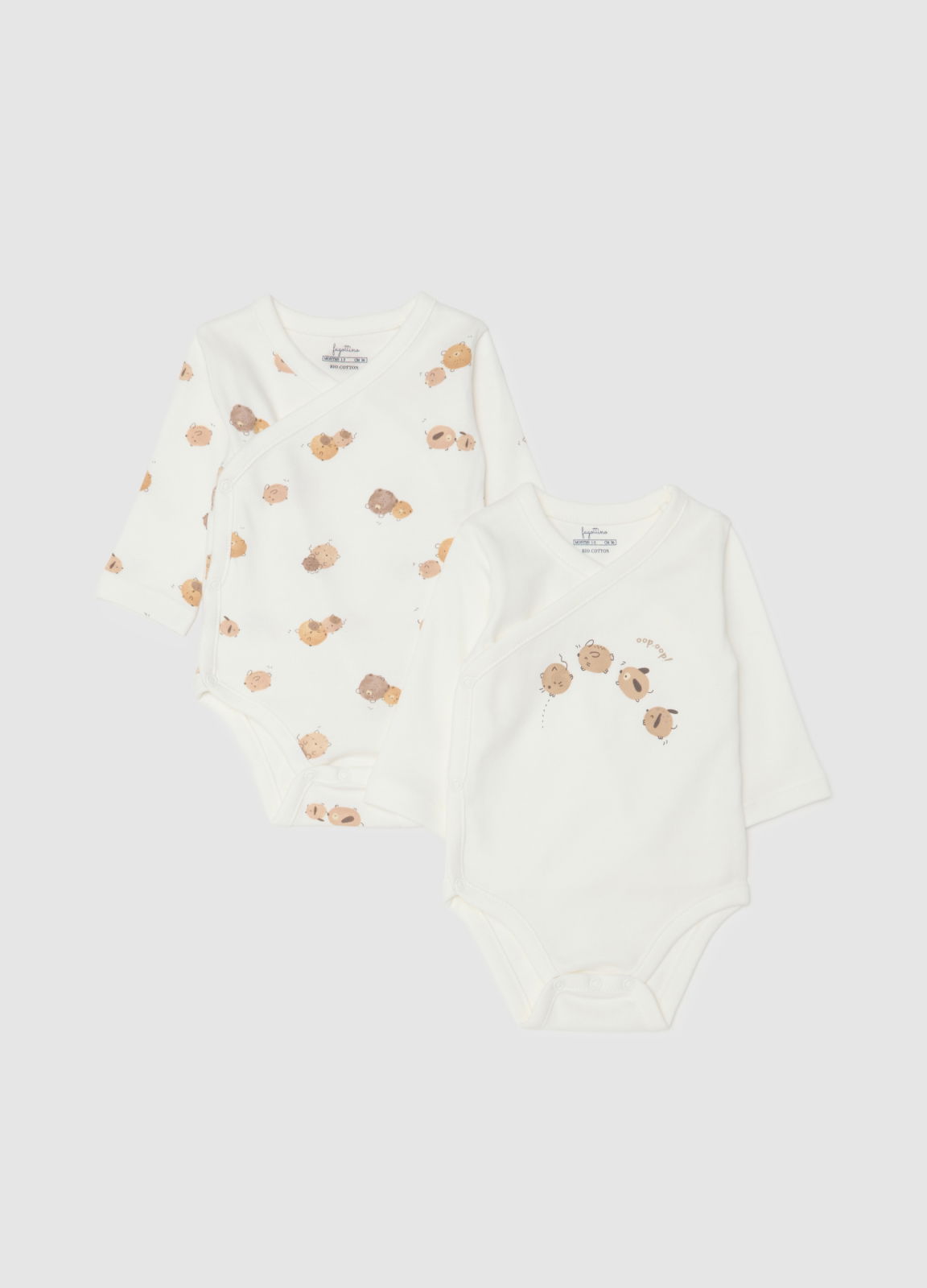 Тип продукта: Детский комплект из двух белых боди с длинными рукавами из чистого хлопка с принтом
