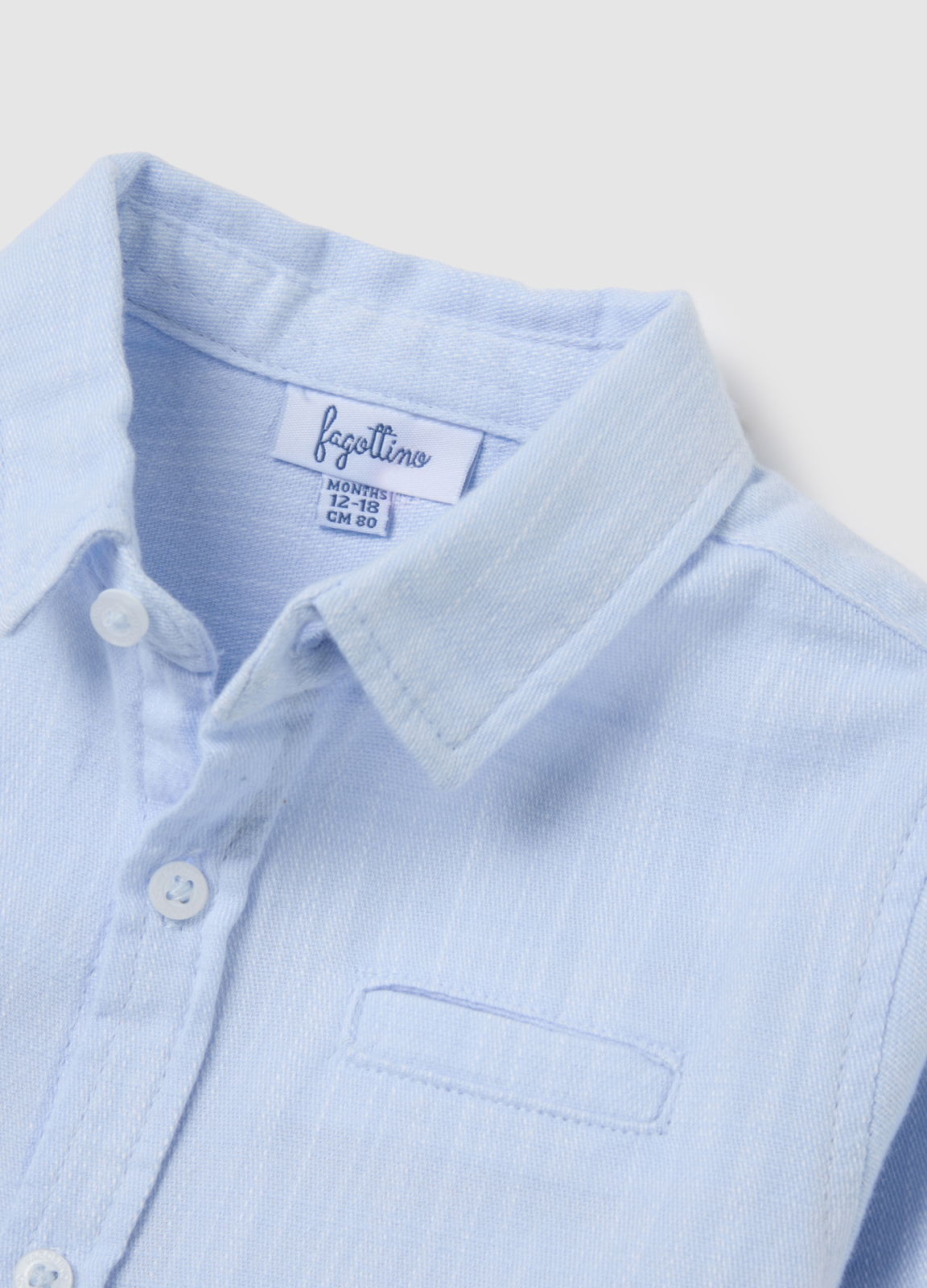 Характеристики: Голубая рубашка из чистого хлопка линии Fagottino для детей 9–36 месяцев обеспечивает комфорт и воздухопроницаемость. Классический воротник и застежка на пуговицы, прямой крой подходит для любых случаев. Длинные рукава делают ее идеальной для осени и зимы, обеспечивая тепло и защиту в прохладные дни.