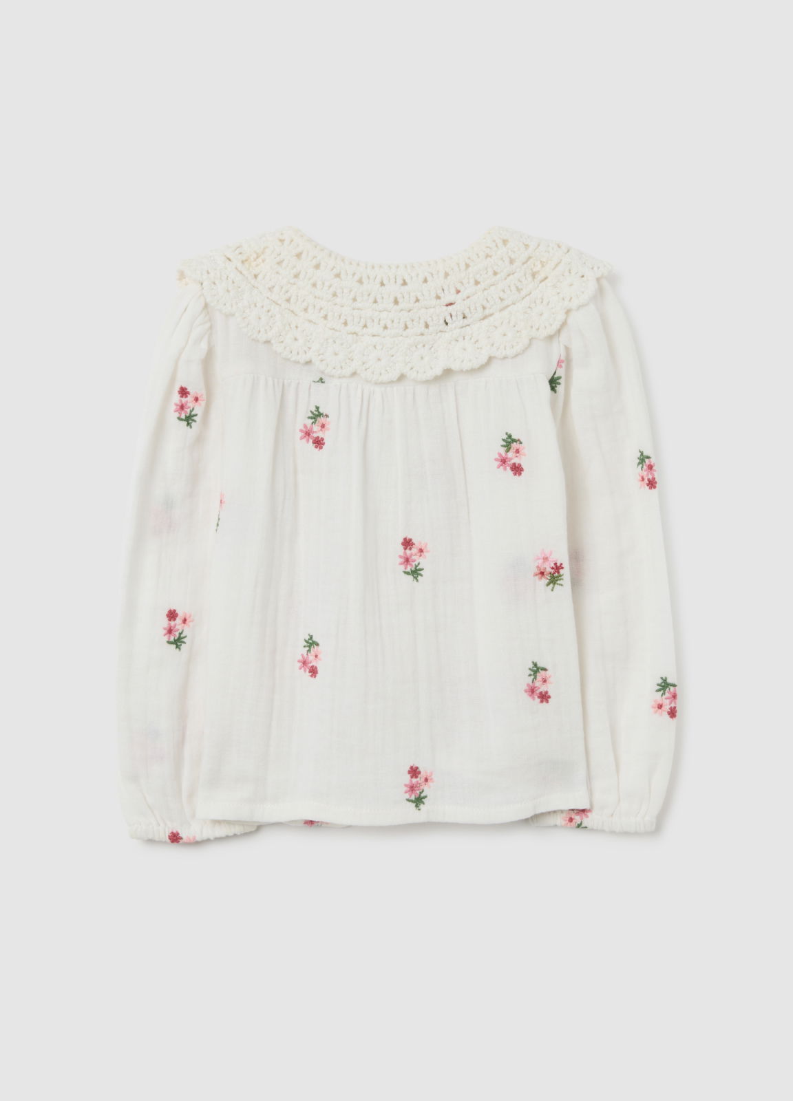Тип продукта: Белая хлопковая рубашка для девочек стандартного кроя с цветами