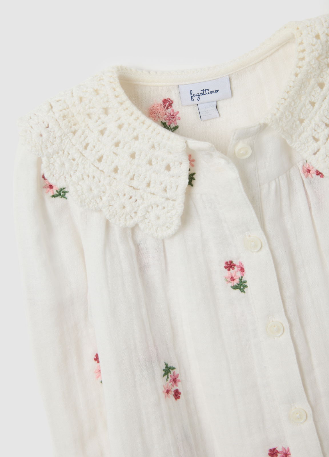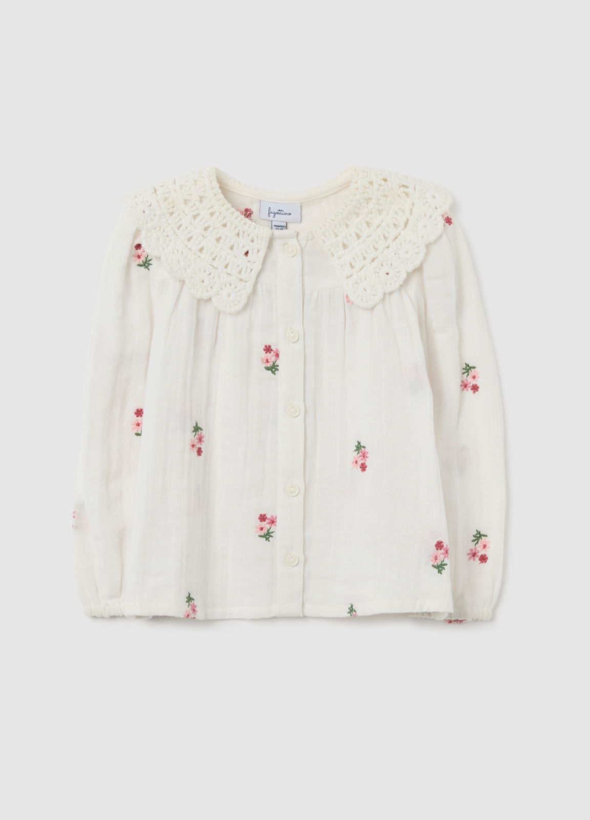 Характеристики: Белая хлопковая рубашка для девочек от 9 до 36 месяцев из линии Fagottino украшена милыми цветочными деталями, идеально подходящая для осенне-зимнего сезона. Обеспечивает комфорт и свободу движений с застёжкой на пуговицы. Классический вязаный воротник добавляет элегантность, обеспечивая свежесть и воздухопроницаемость.