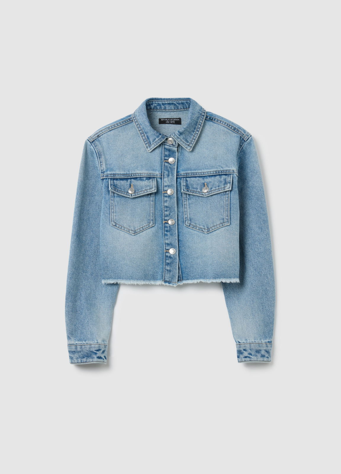 Характеристики: Эта укороченная джинсовая куртка из линии OVS Kids для девочек от 10 до 15 лет — универсальная и практичная вещь. Выполнена из хлопковой смеси, с классическим воротником и длинными рукавами с манжетами на пуговицах. Накладные карманы с клапанами и металлические пуговицы добавляют стильный акцент. Идеально дополняет осенне-зимние образы, подходит для любого случая.