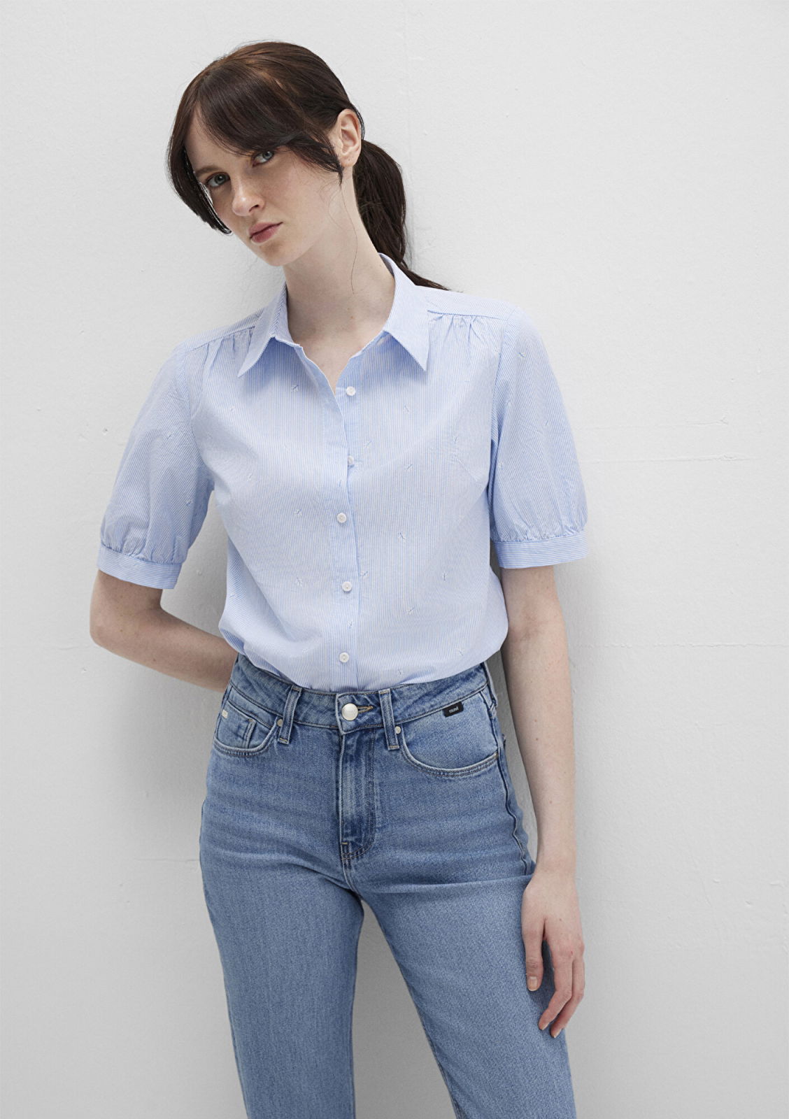 Mavi Женская Рубашка С Коротким Рукавом Голубая : 100% Хлопок, Рубашки с коротким рукавом женские