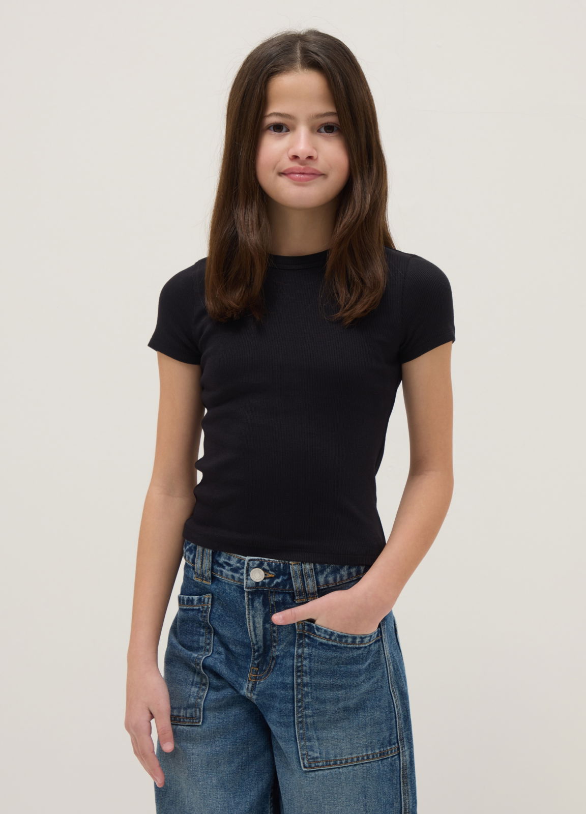 Тип продукта: Чёрная облегающая футболка из эластичного хлопка для девочек