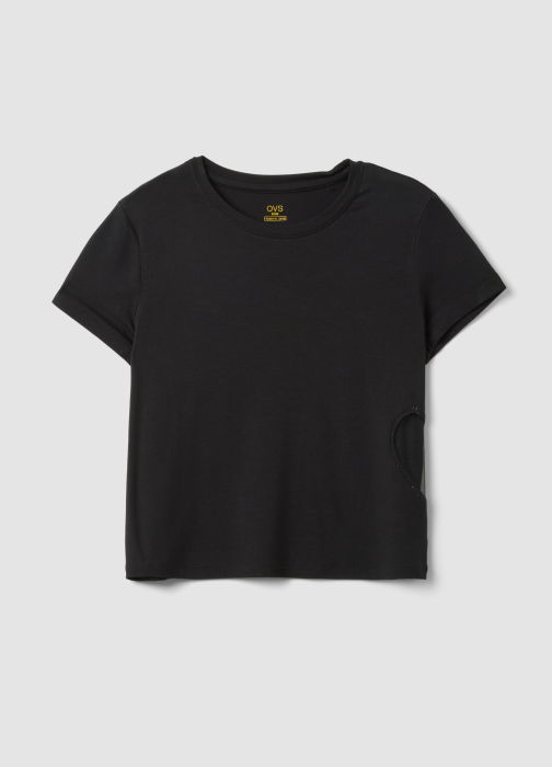Характеристики: Чёрная футболка для девочек OVS Kids выполнена из эластичной вискозы. Короткие рукава и круглый вырез делают её идеальной для жарких дней.
