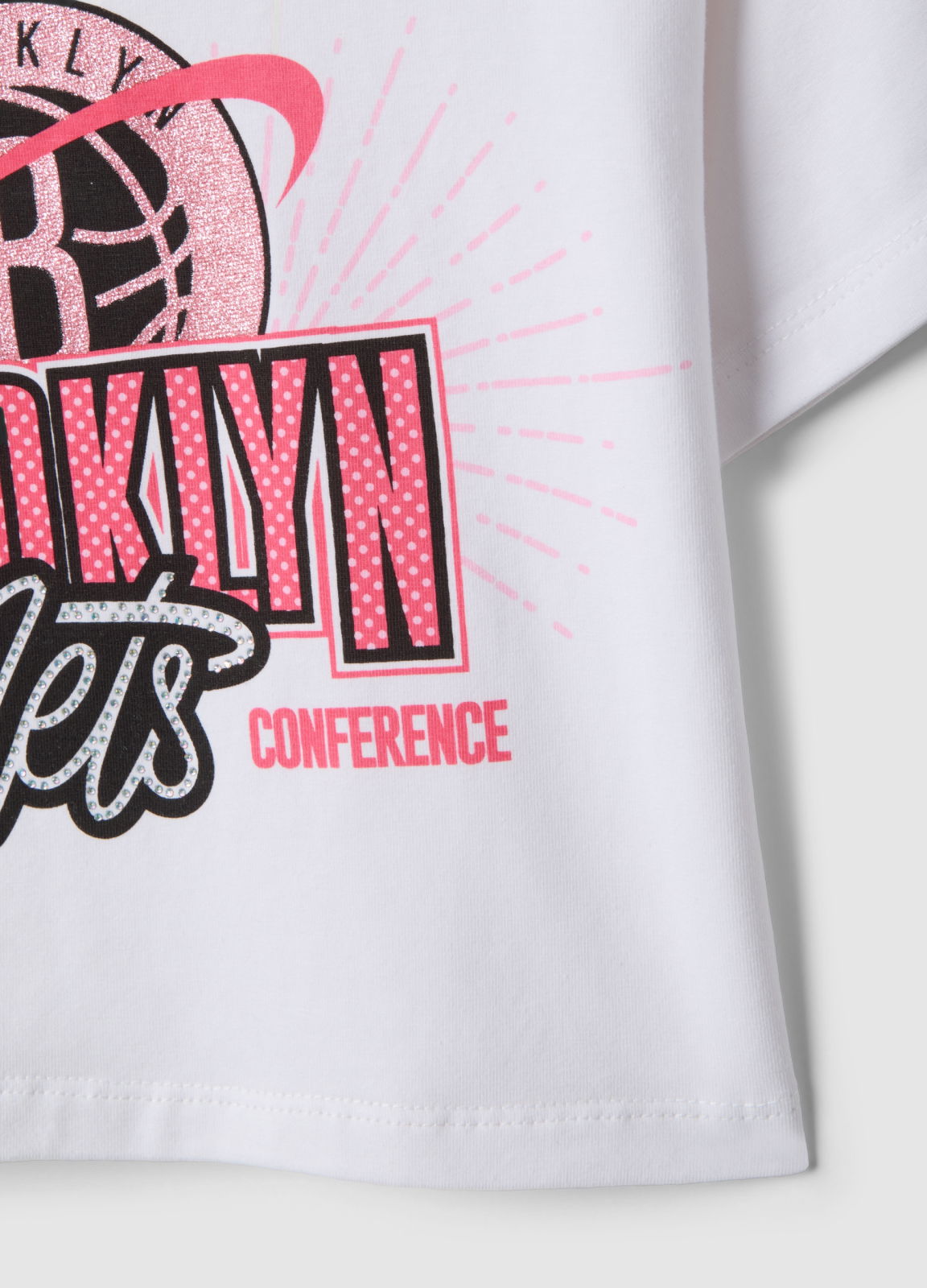 Тип продукта: Белая футболка для девочек, boxy крой, из эластичного хлопка, с Brooklyn