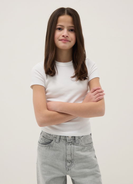 Тип продукта: Белая облегающая футболка из эластичного хлопка для девочек