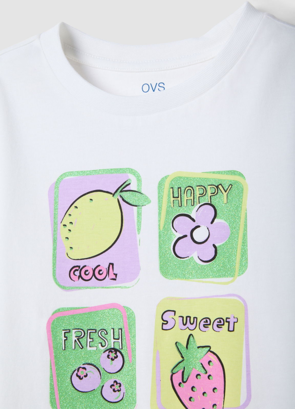 Характеристики: Белая футболка из линии OVS выполнена из чистого хлопка, предназначена для девочек 3-10 лет, идеально для весенне-летнего сезона. Стандартная посадка и круглый вырез обеспечивают комфорт и свободу движения. Яркие принты с фруктами спереди добавляют веселья простому дизайну, делая её идеальной для повседневных нарядов.