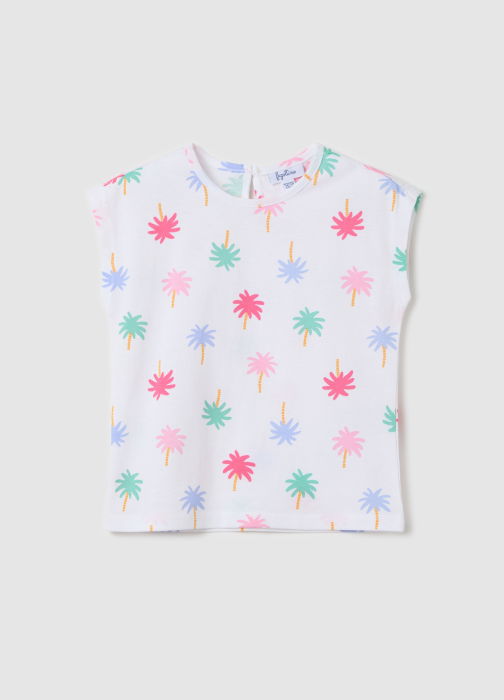 Характеристики: Безрукавка из 100% хлопка. Круглый вырез. Принт пальм по всему изделию. Разрез с кнопкой на спинке.