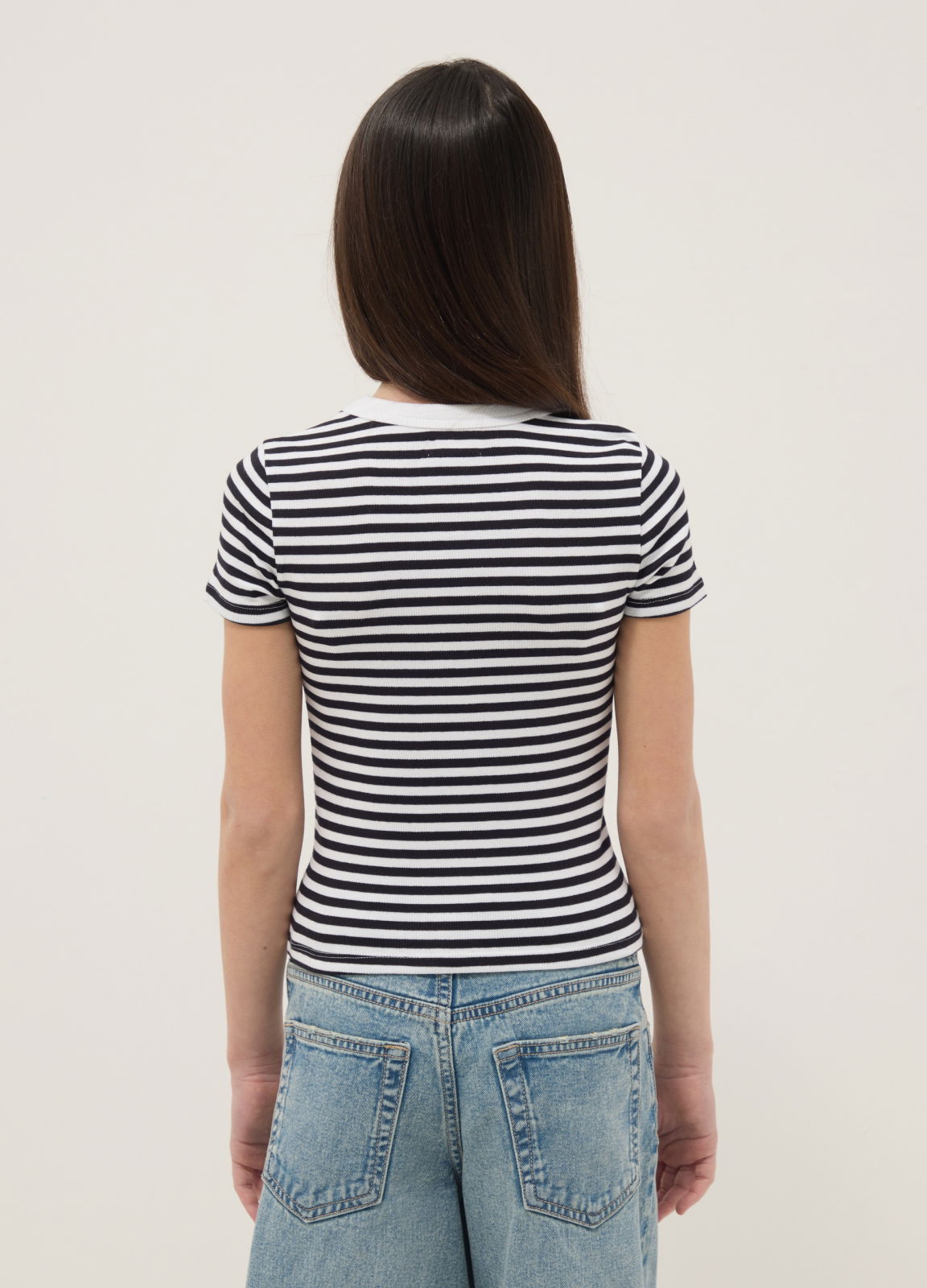 Тип продукта: Футболка для девочек из эластичного хлопка в разноцветную полоску узкого кроя