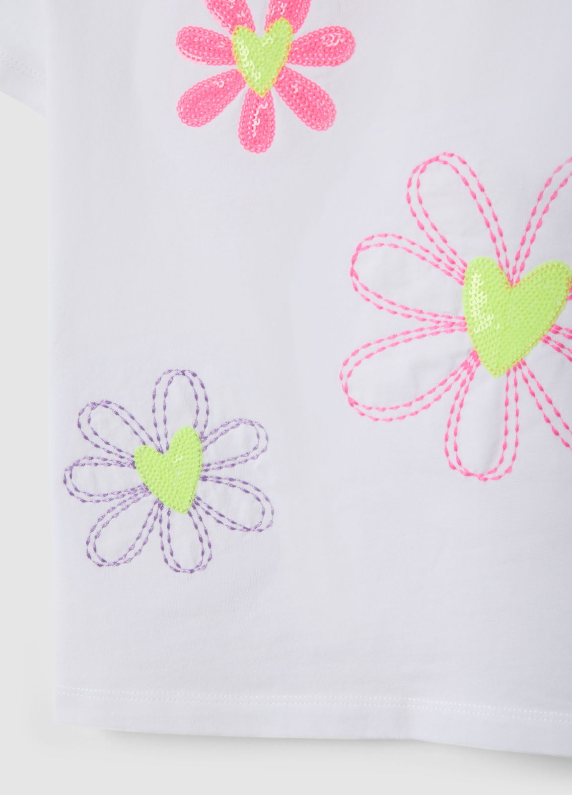 Тип продукта: Белая футболка из эластичного хлопка для девочек с вышитыми цветами