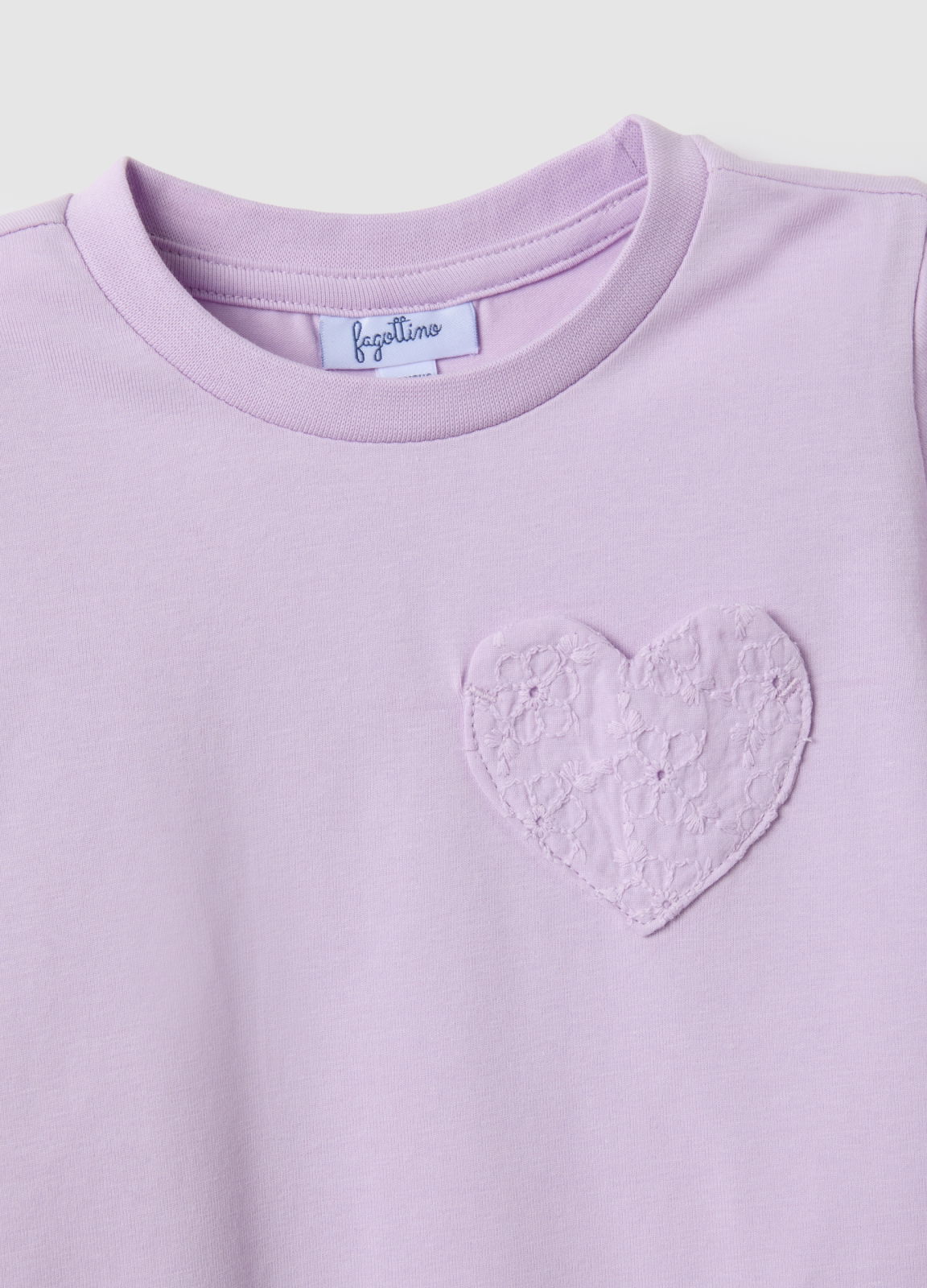Характеристики: Фиолетовая футболка из линии Fagottino предназначена для девочек от 9 до 36 месяцев. Изготовленная из эластичного хлопка, она обеспечивает комфорт и свободу движений. Дизайн дополнен декоративным тканевым сердцем, придающим особый акцент. Благодаря посадке regular fit и круглому вырезу, эта футболка идеально подходит для тёплых дней и различных случаев.