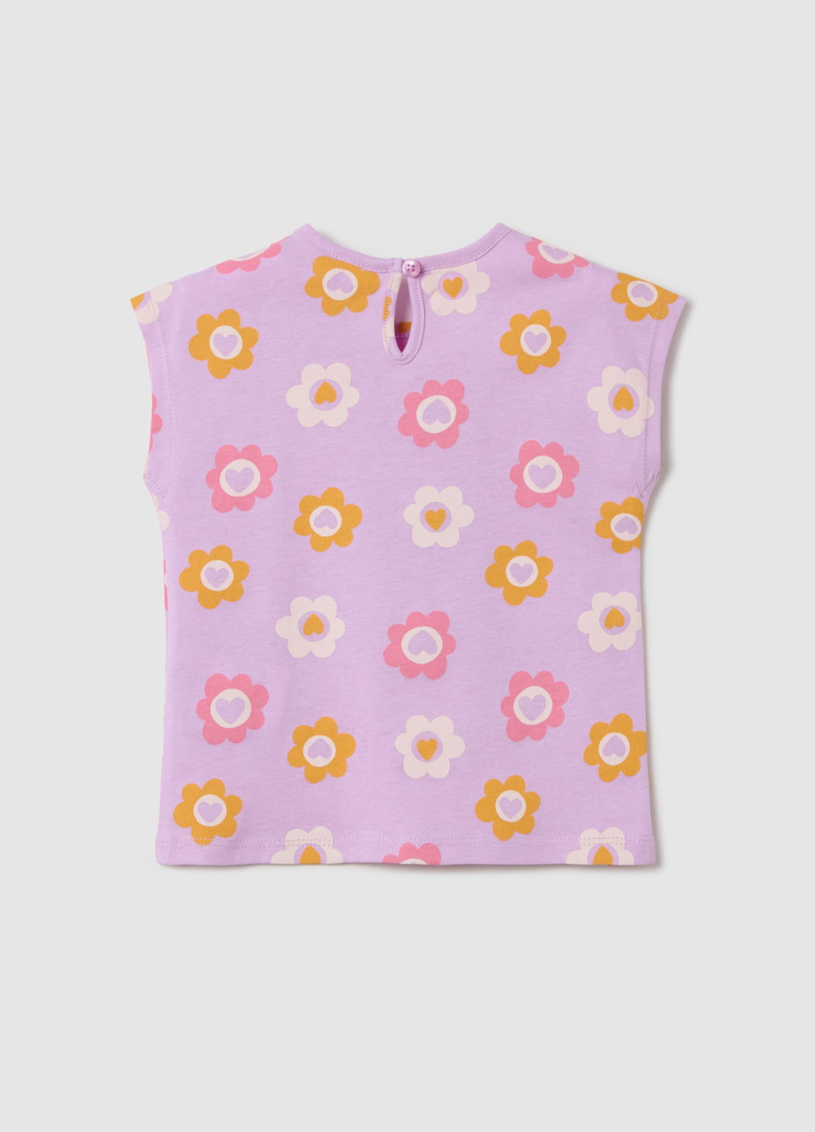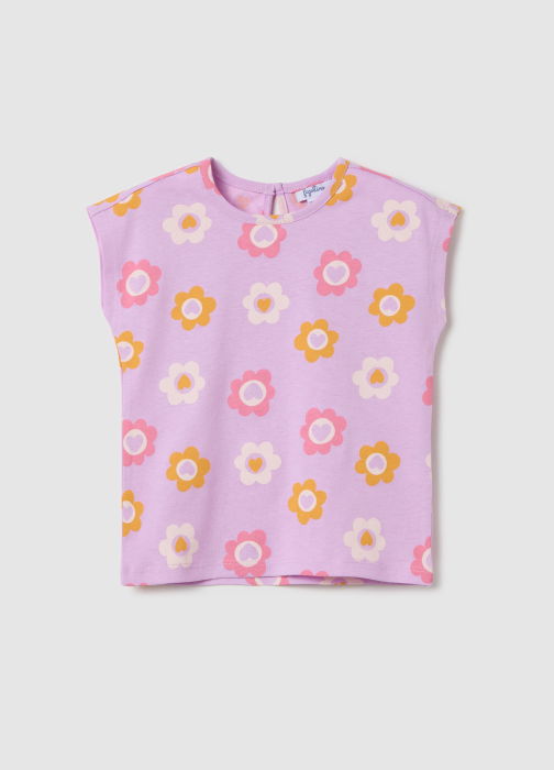 Характеристики: Футболка без рукавов из 100% хлопка. Круглый вырез. Принт с цветами по всей поверхности. Разрез с пуговицей на спинке.