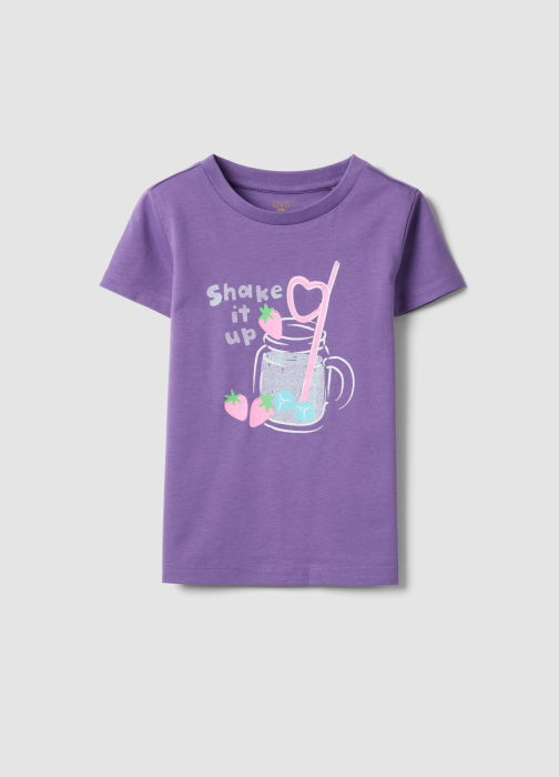 Тип продукта: Фиолетовая футболка для девочек из чистого хлопка, обычный крой, с принтом