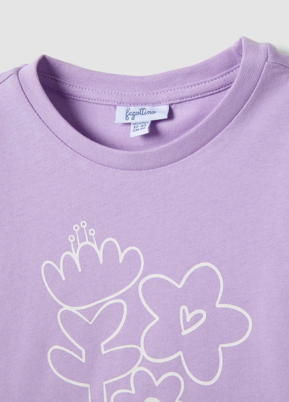 Характеристики: Фиолетовая футболка из линии Fagottino предназначена для девочек в возрасте от 9 до 36 месяцев и обеспечивает высокий комфорт благодаря коротким рукавам и круглому вырезу. Изготовлена из чистого хлопка, она обеспечивает мягкость и воздухопроницаемость, идеально подходящие для нежной кожи. Белый цветочный узор добавляет яркости повседневному образу и подходит для любого случая.