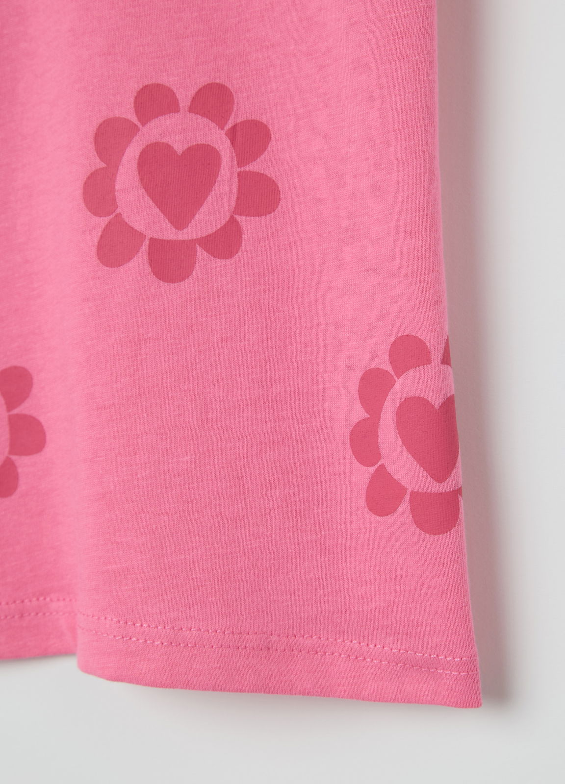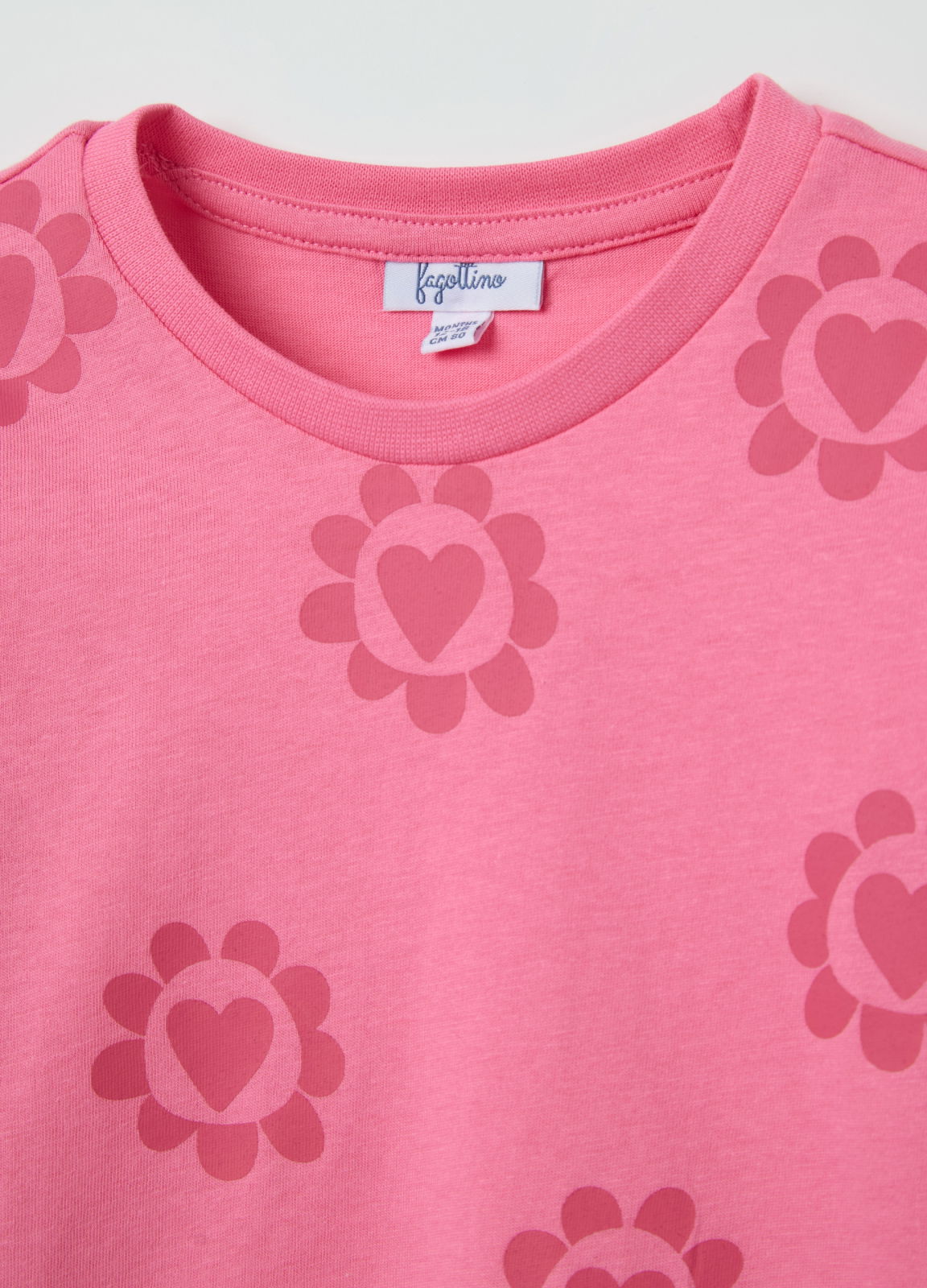 Характеристики: Футболка из 100% хлопка. Круглый вырез. Принт с цветами и сердечками на передней части.