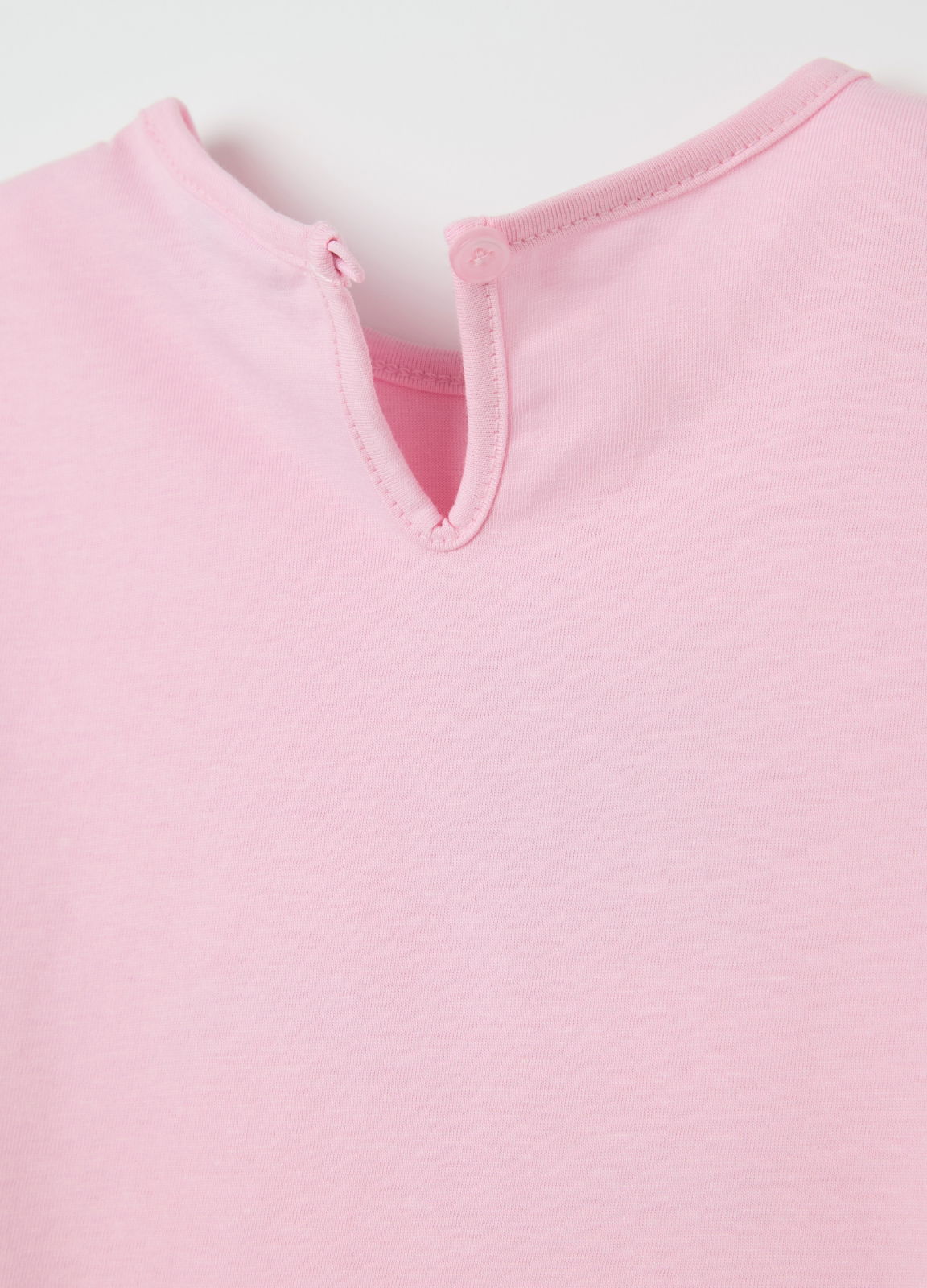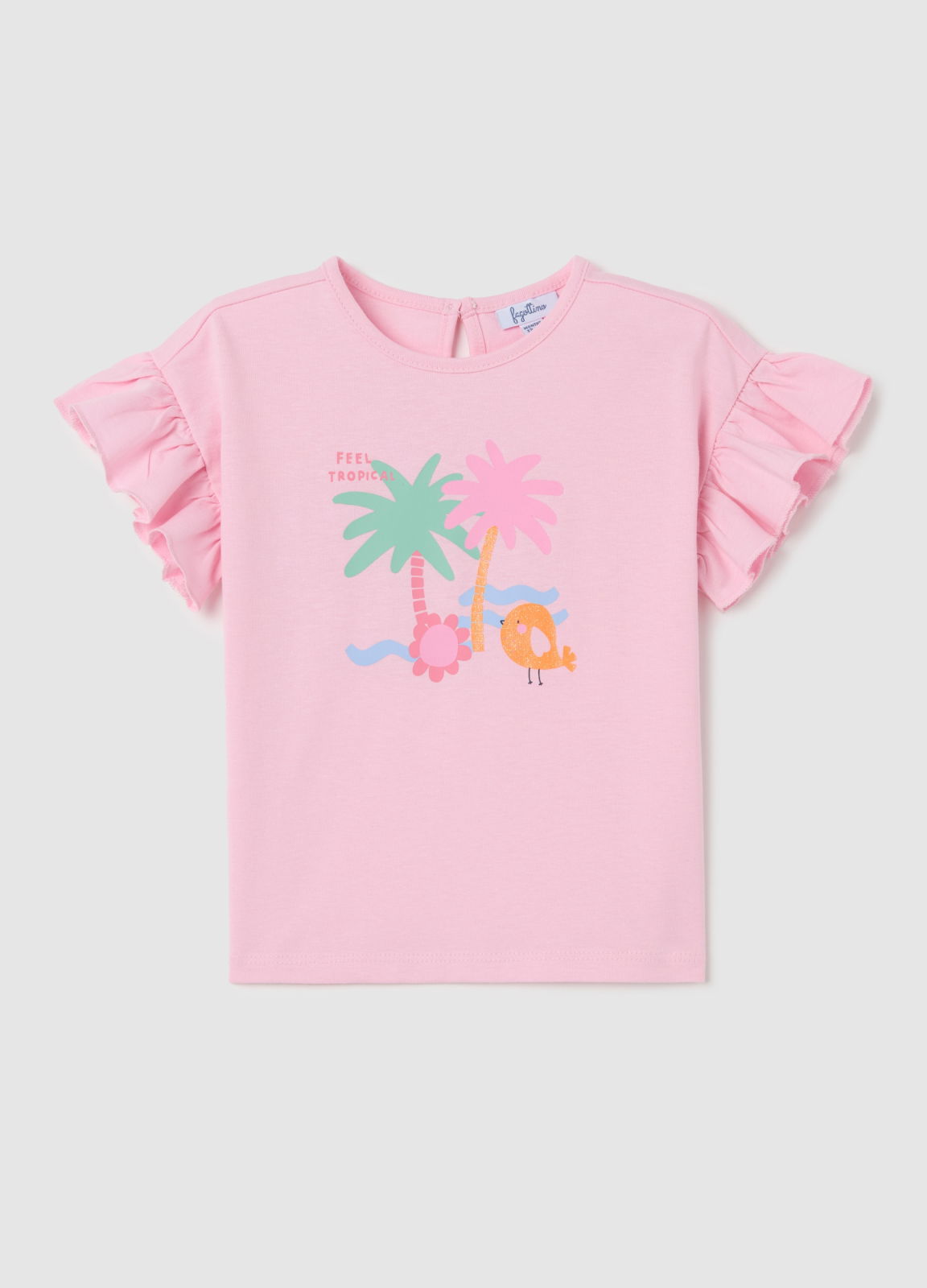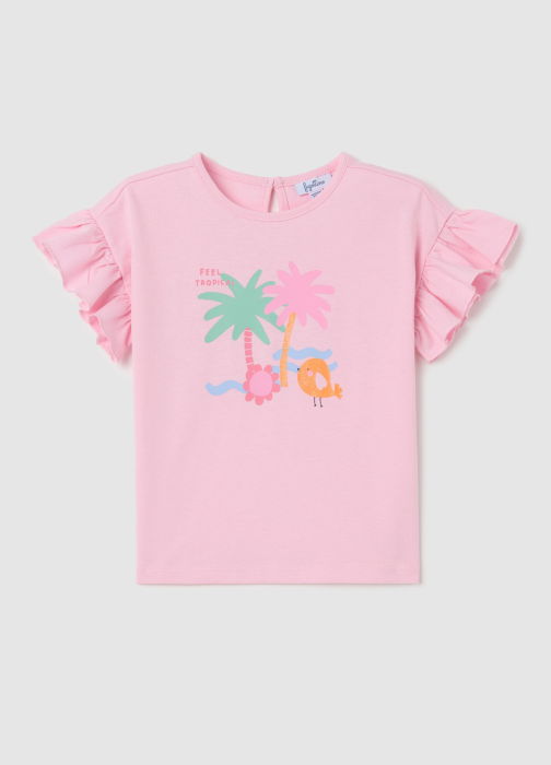 Тип продукта: Розовая хлопковая футболка с рюшами и принтом