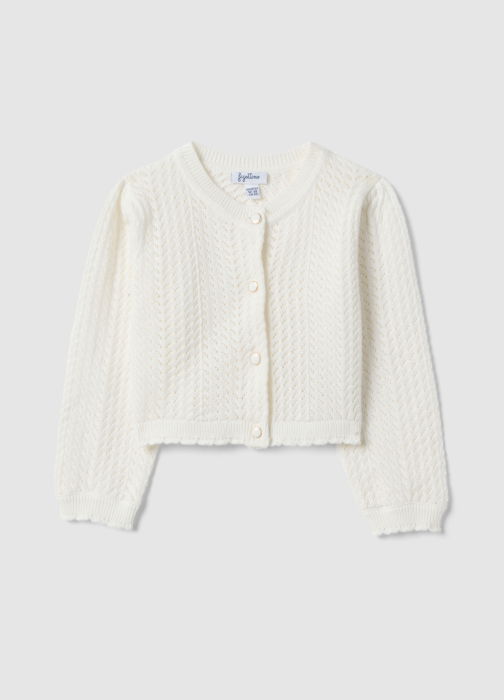Тип продукта: Белый приталенный кардиган из хлопка для девочек с кружевным дизайном