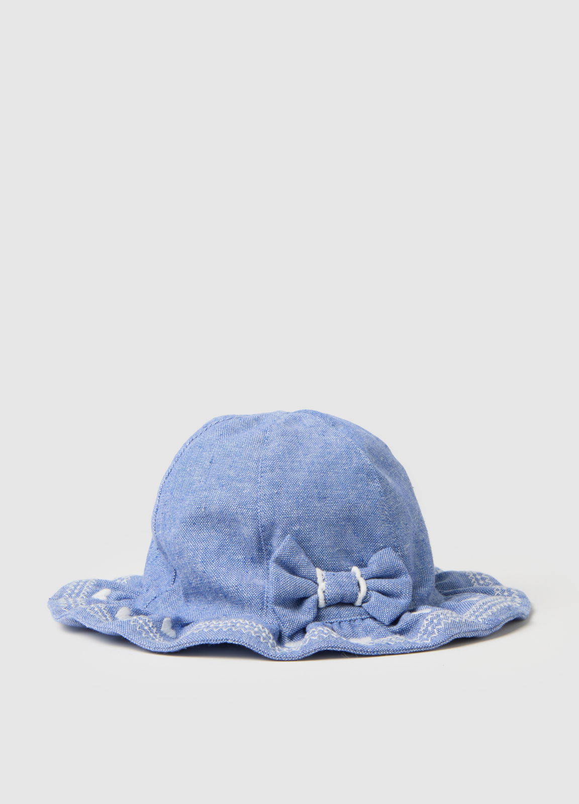 Характеристики: Синяя детская шапочка из линии Fagottino из хлопковой смеси. Рюши по краю придают изящества, а декоративный бантик сзади делает её уникальной.