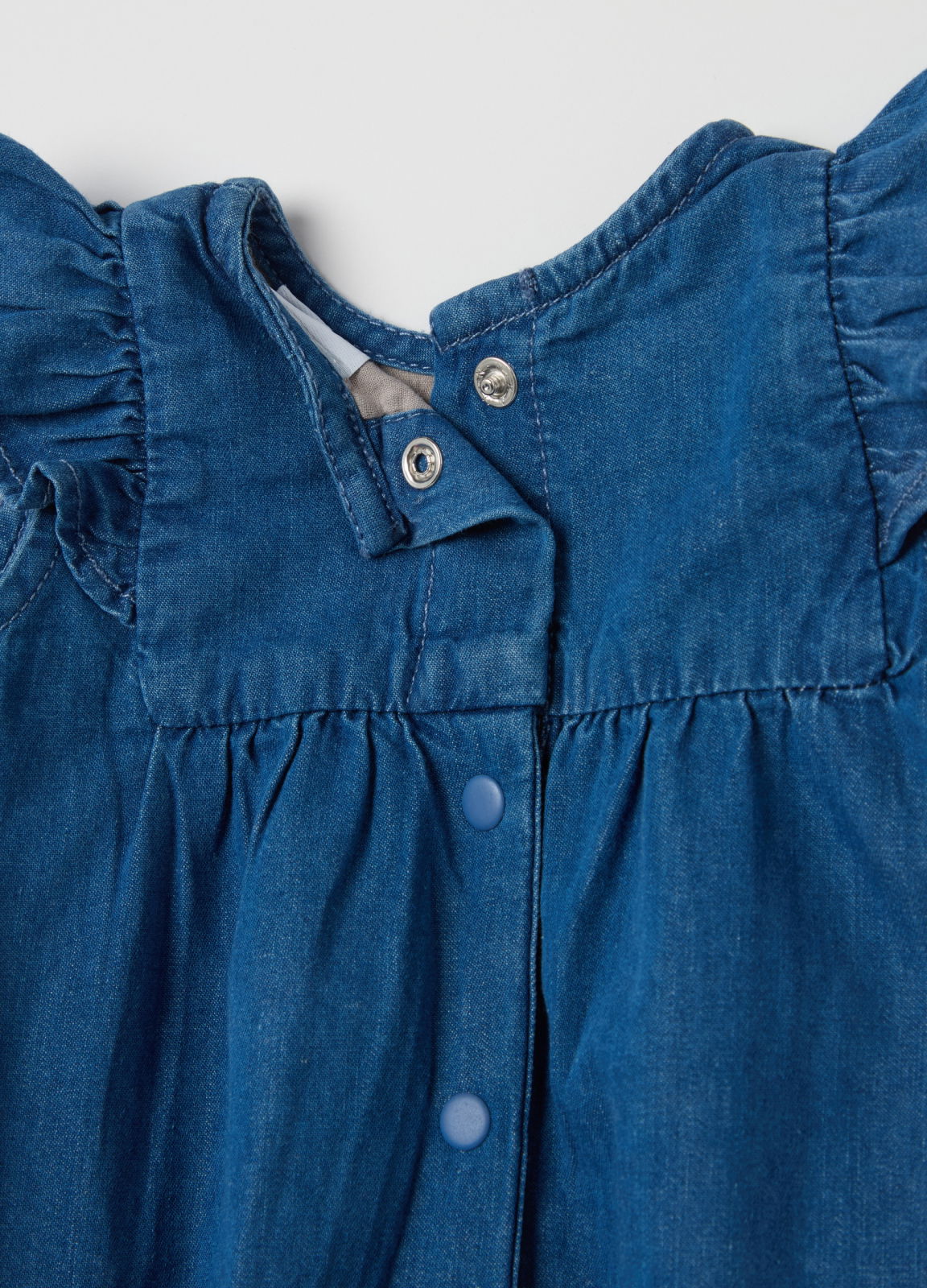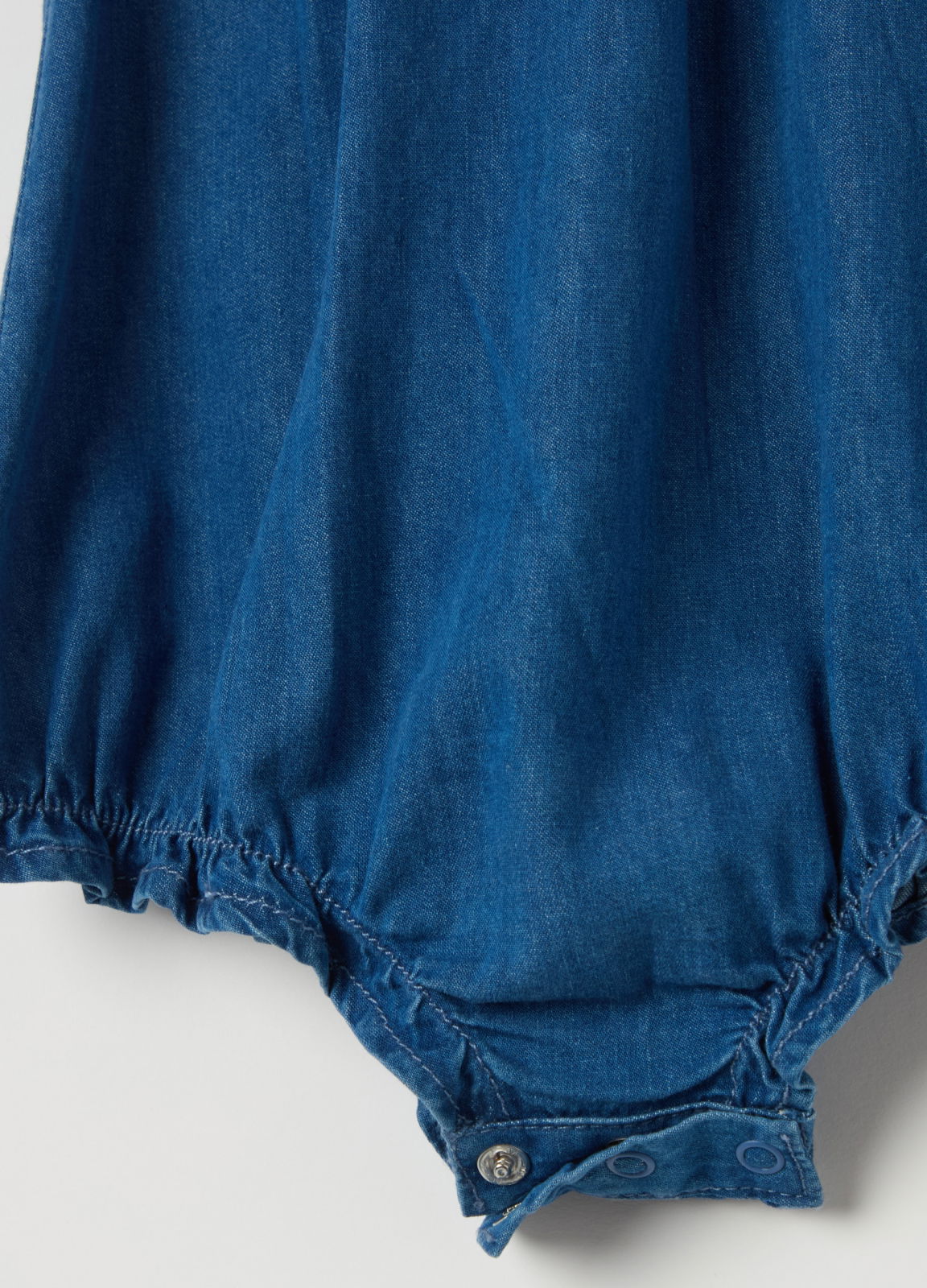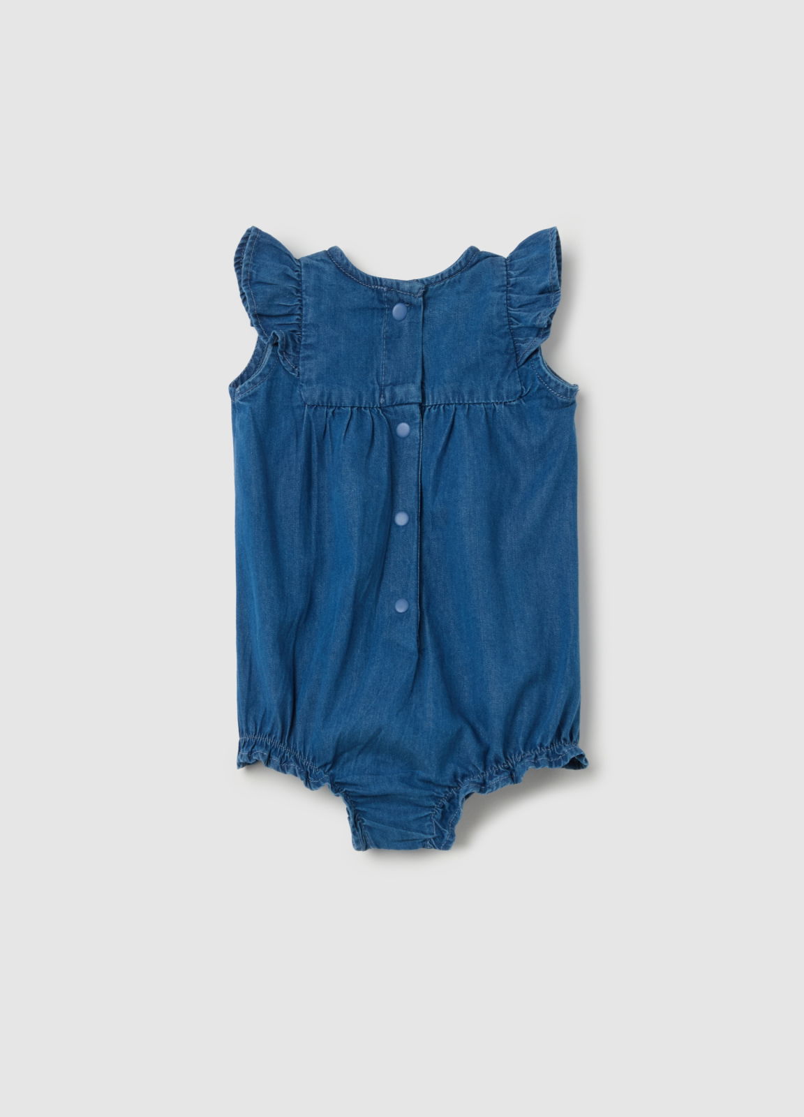 Характеристики: Ромпер из 100% хлопкового денима. Круглый вырез. Рукава-крылышки. Вышивка цветов на груди. Застёжка на кнопки сзади и в области паха.