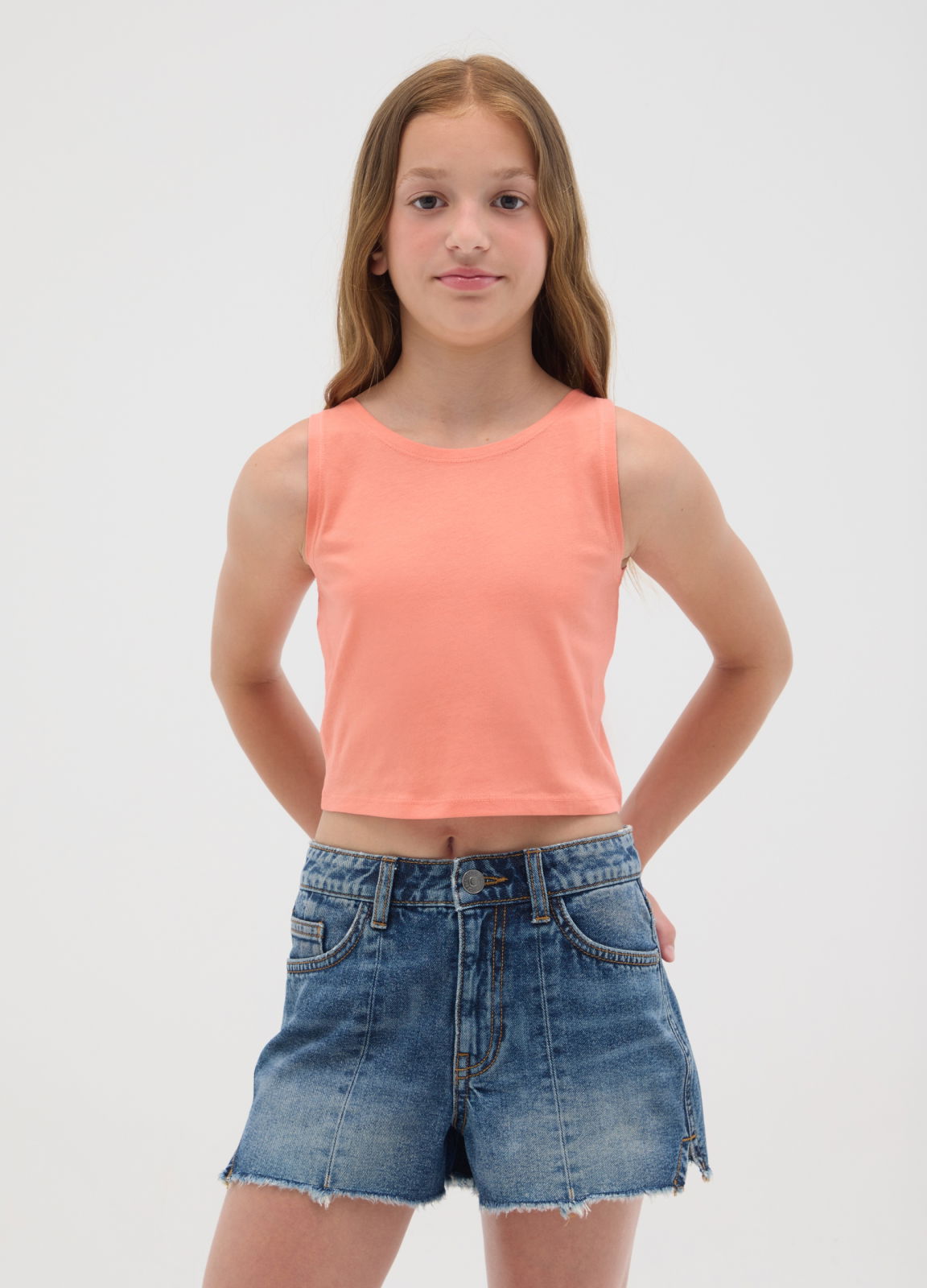 Тип продукта: Оранжевый хлопковый кроп-топ для девочек, обычный крой