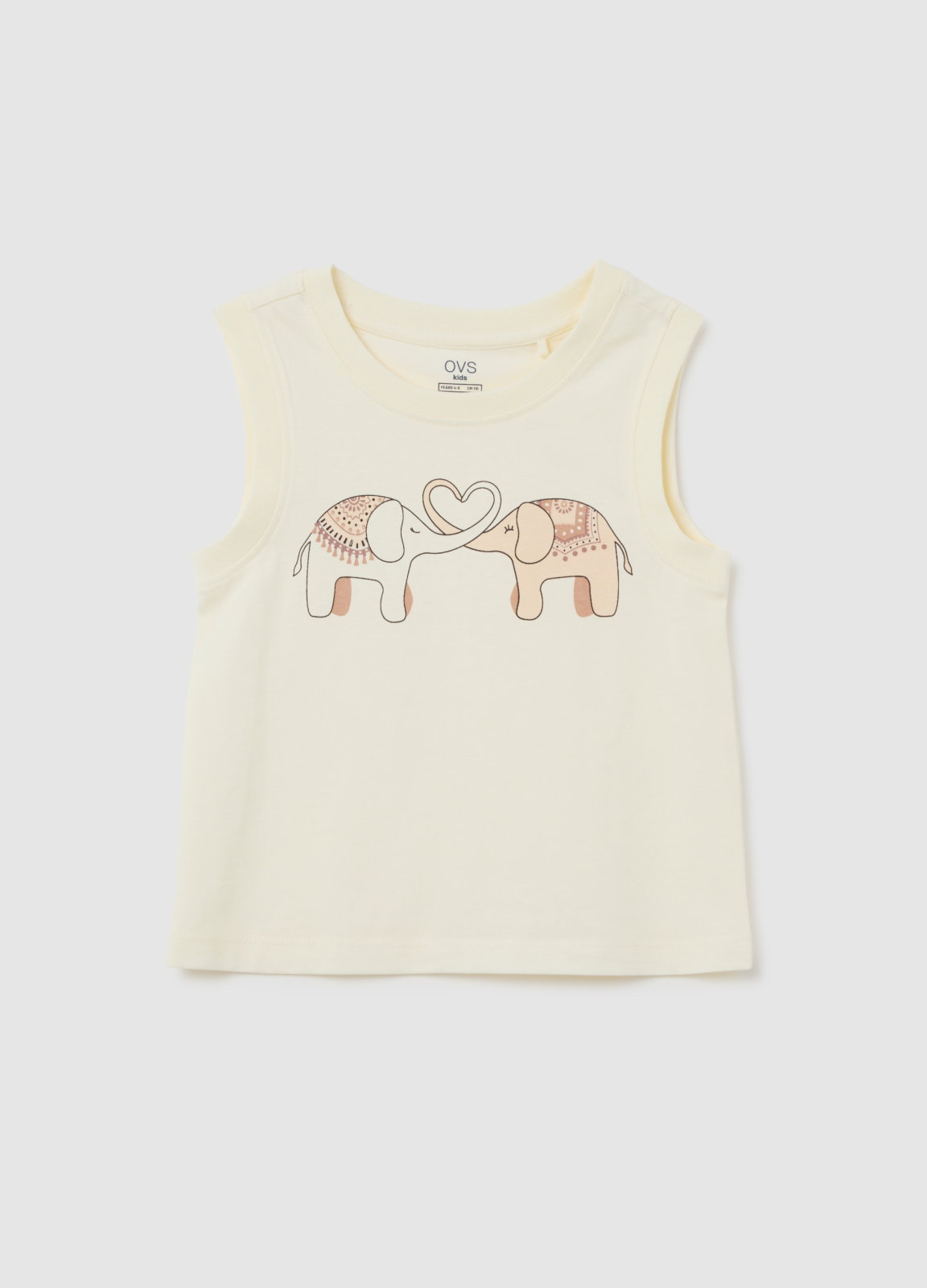 Характеристики: Эта белая майка для девочек от OVS Kids с уникальным принтом: милые слоны, переходящие в сердце. Изготовлена из 100% хлопка, обеспечивает максимальный комфорт благодаря легким материалам. Идеально подходит для летнего сезона, добавляет сладость в каждый летний образ.