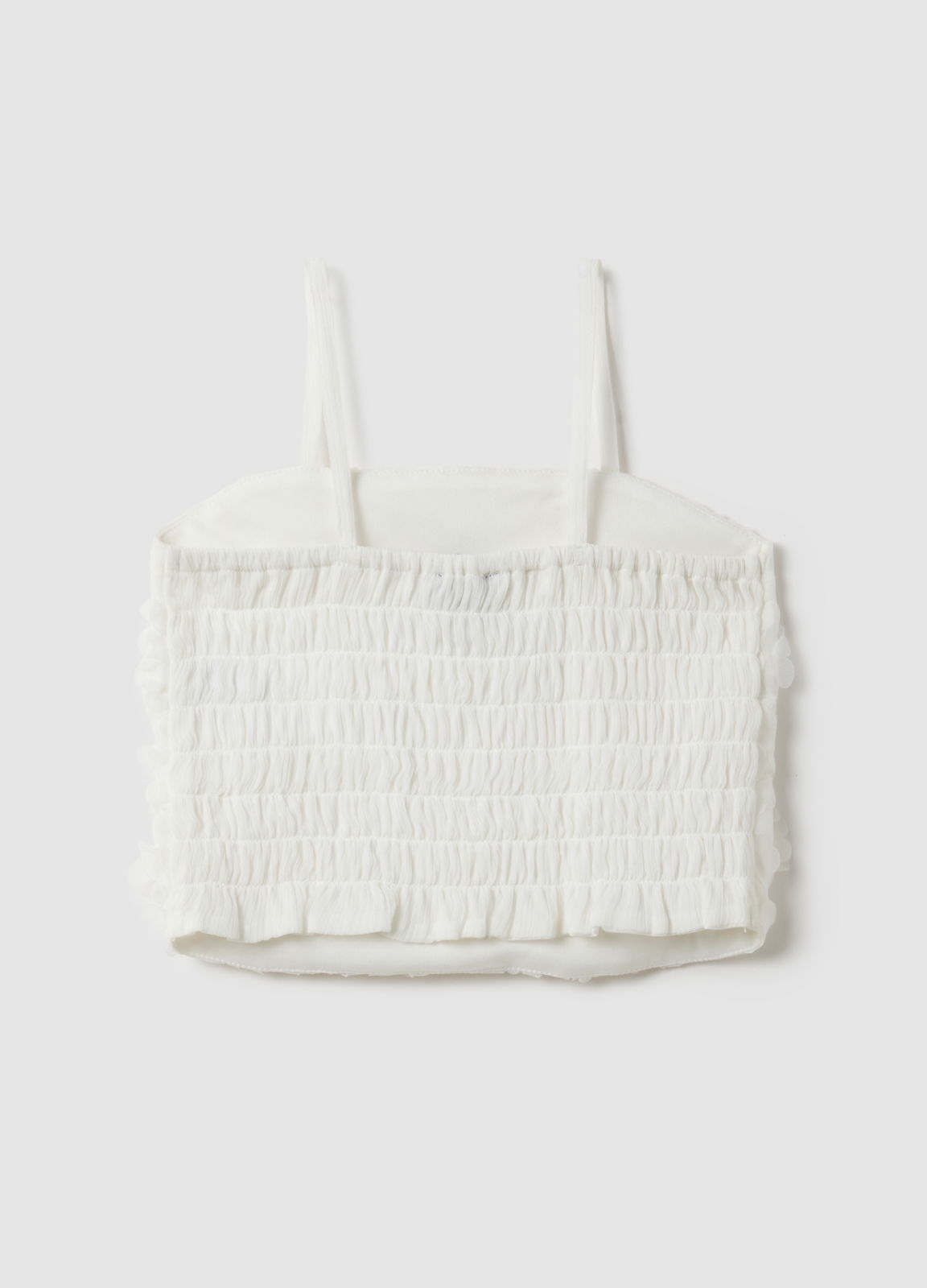 Характеристики: Белая майка из линии OVS KIDS предназначена для девочек от 3 до 10 лет. Передняя часть украшена цветочной текстурой. Тонкие бретели обеспечивают стандартную посадку, а сборка сзади добавляет оригинальности. Идеальна для летних дней и создания лёгкого образа.